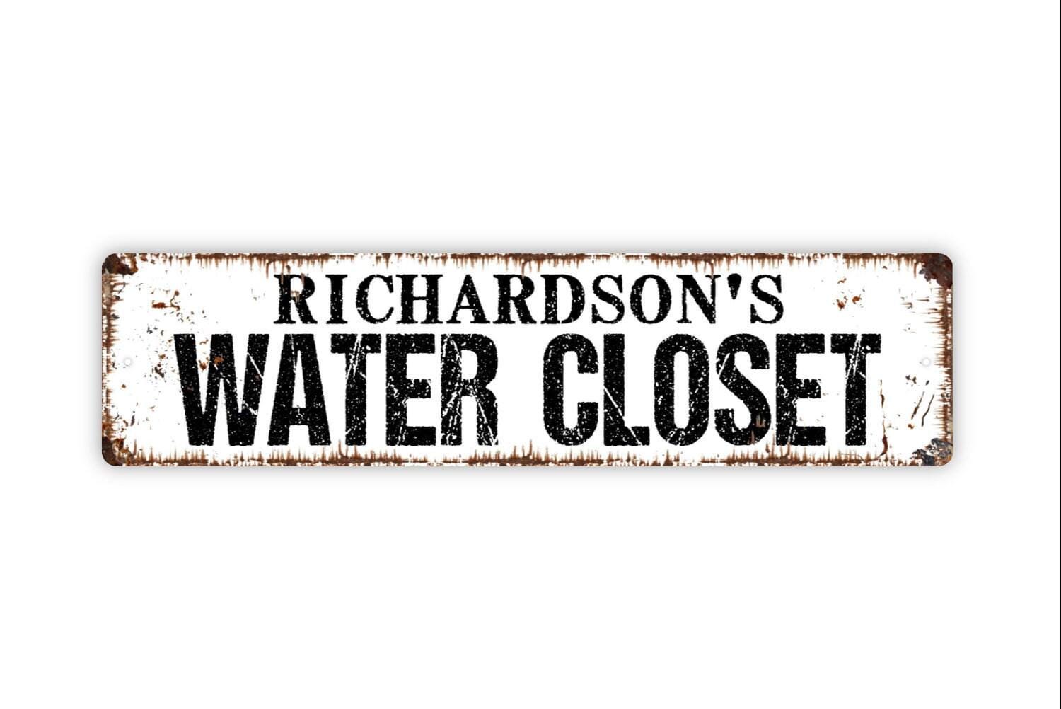 Personalized Water Closet Sign | Custom Bathroom Door Sign Metal or Vinyl Sticker | Rustic Farmhouse Bath Decor | Guest Restroom Sticker