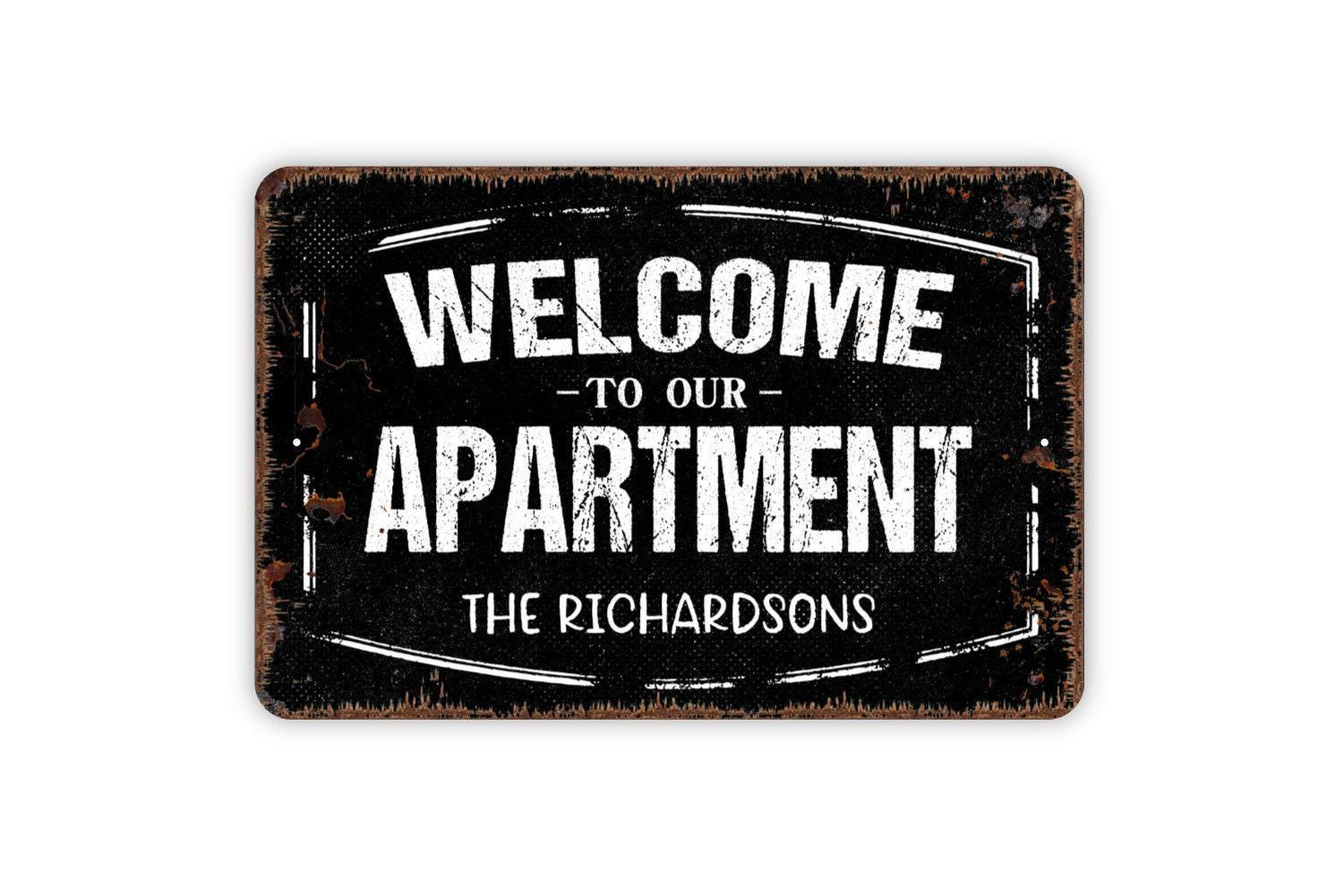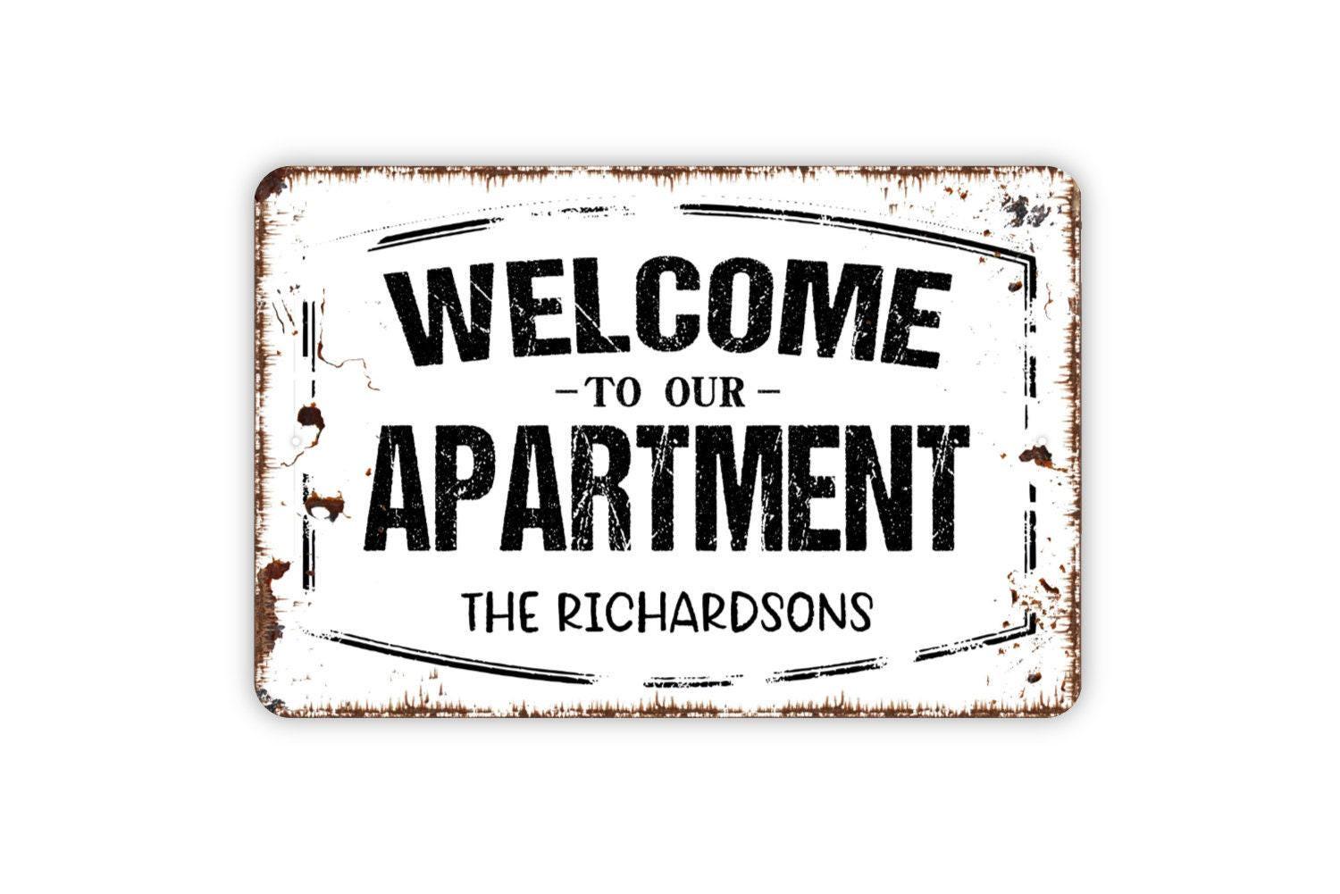Personalized Welcome To Our Apartment Sign | Custom Entryway or Door Wall Sign | Rustic Farmhouse Style Metal Sign or Vinyl Sticker