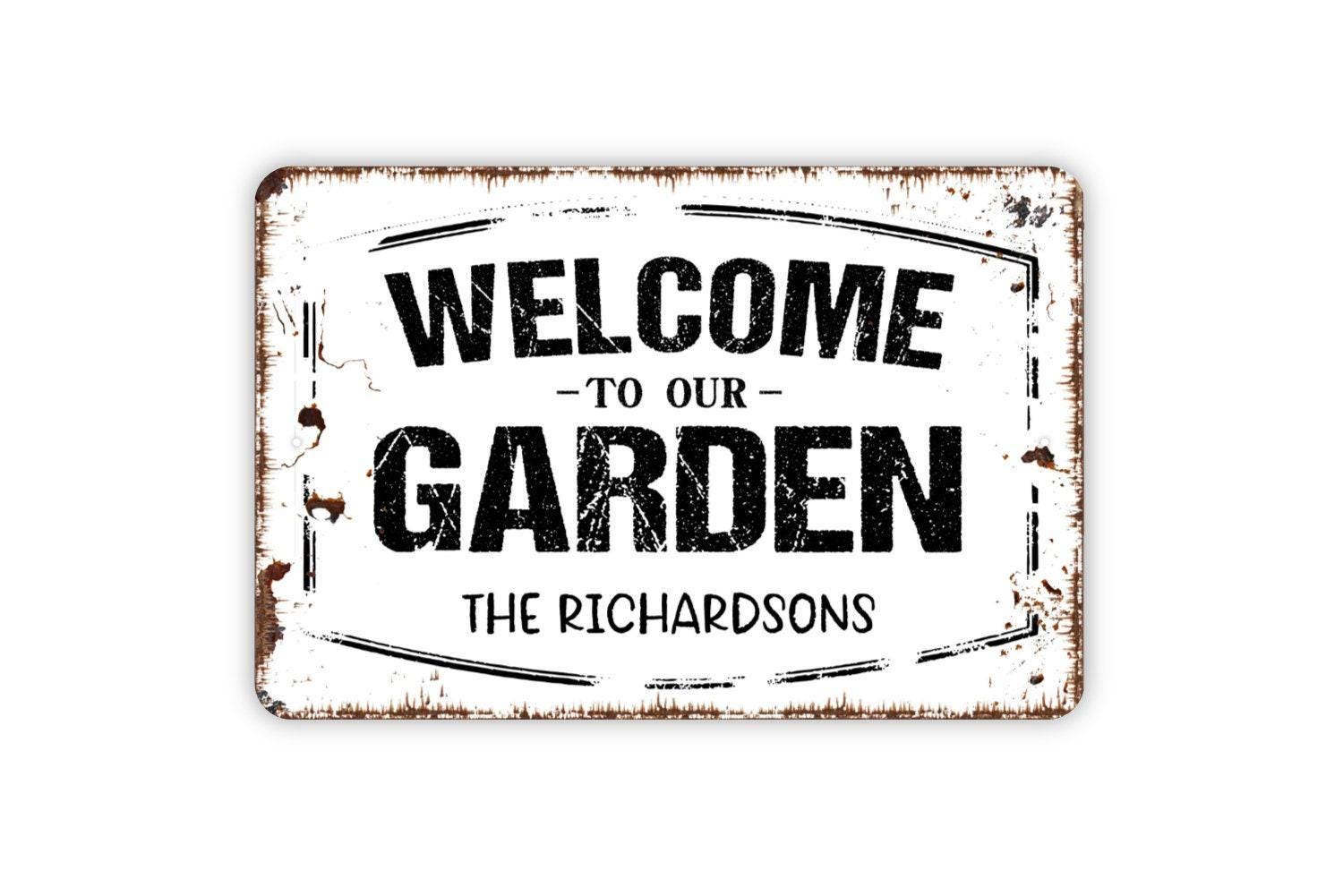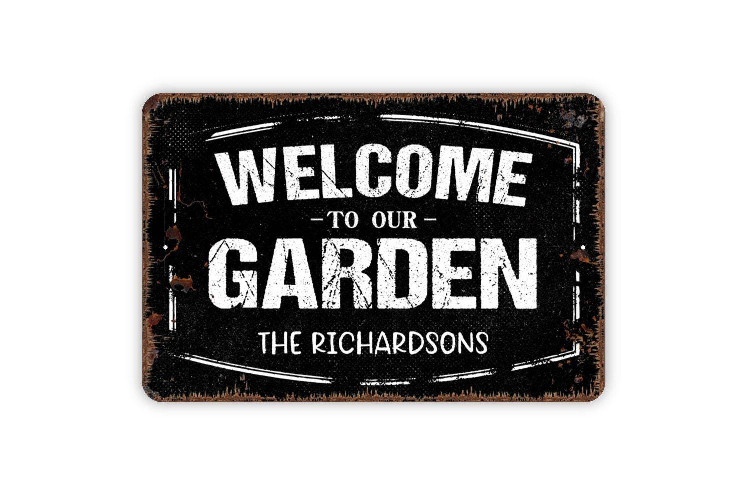 Personalized Welcome To Our Garden Sign | Custom Outdoor Yard, Patio, or Greenhouse Wall Sign | Metal Garden Sign or Vinyl Sticker Décor
