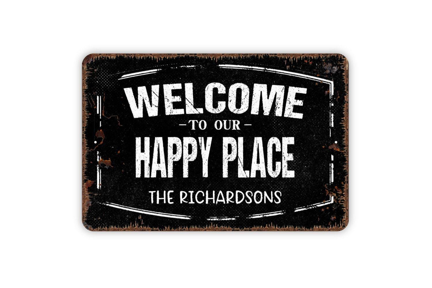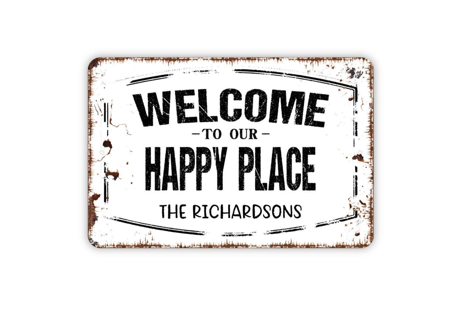 Personalized Welcome To Our Happy Place Sign - Custom Metal Wall Art Indoor Or Outdoor