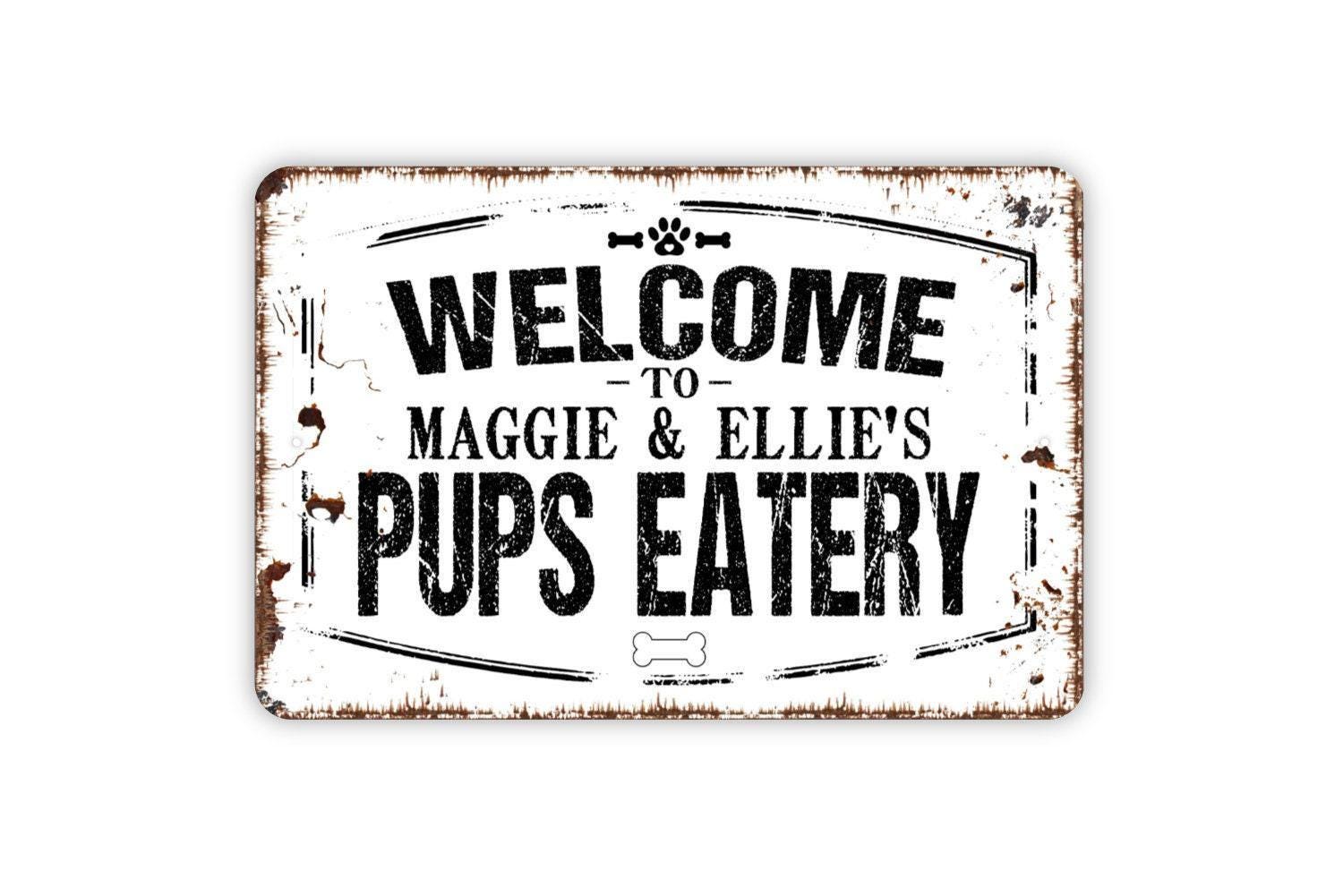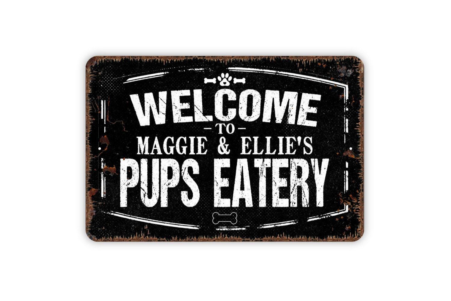 Personalized Welcome To Pup's Eatery - Custom Pet Name Dog Food Water Bowl Metal Wall Art Indoor Or Outdoor
