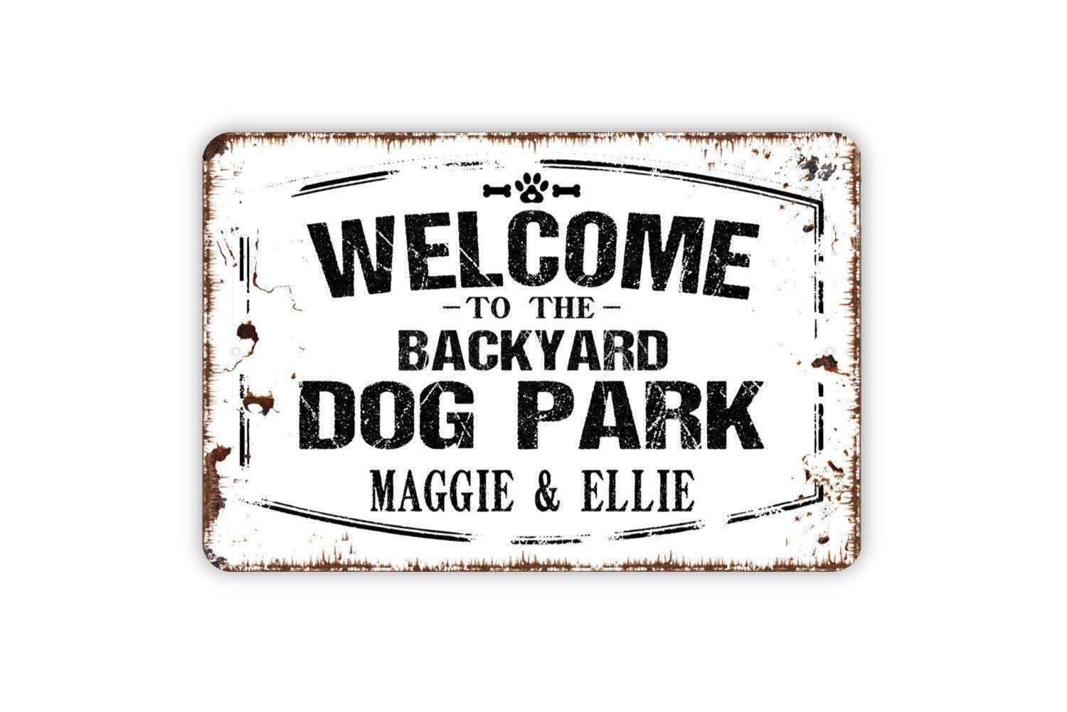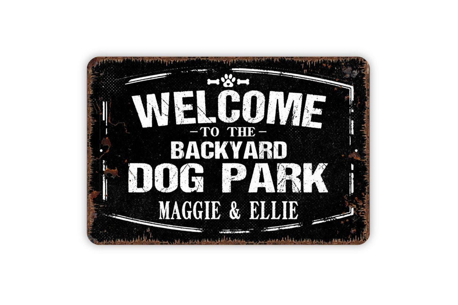 Personalized Welcome To The Backyard Dog Park Sign | Custom Dog Lover Yard Decor | Metal Sign or Vinyl Sticker for Fence Gate