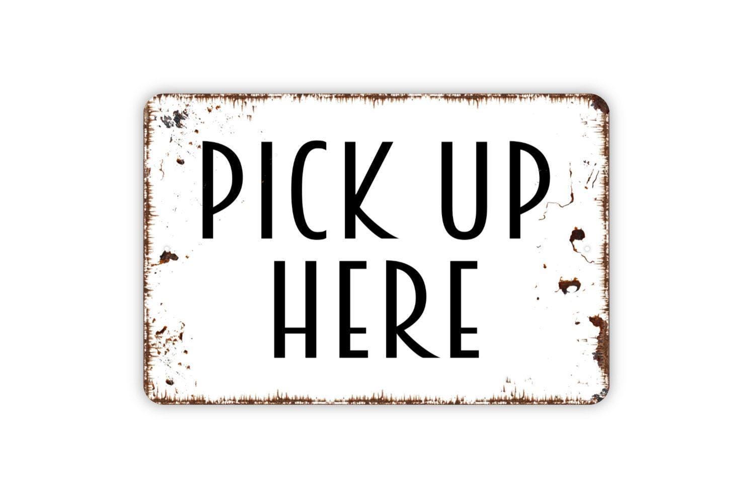 Pick Up Here Sign, Metal Sign, Farmhouse Contemporary Modern Wall Metal Sign