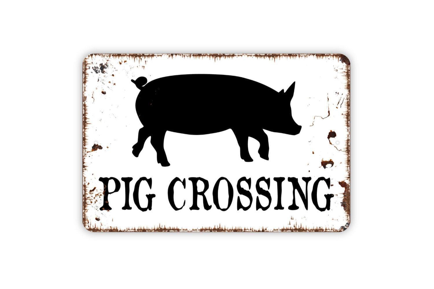 Pig Crossing Sign - Swine Hog Farm Metal Indoor or Outdoor Wall Art