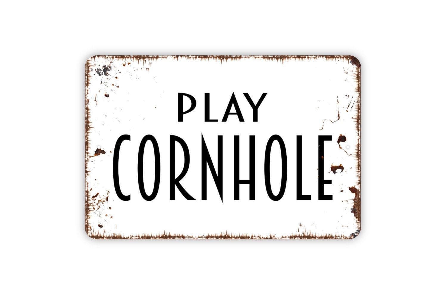 Bring fun to your gathering with this “Play Cornhole” sign, available as a metal sign or vinyl sticker. Perfect for backyard parties, weddings, barbecues, and outdoor events, it helps guests find the game zone. A playful décor piece for lawn games and social gatherings.