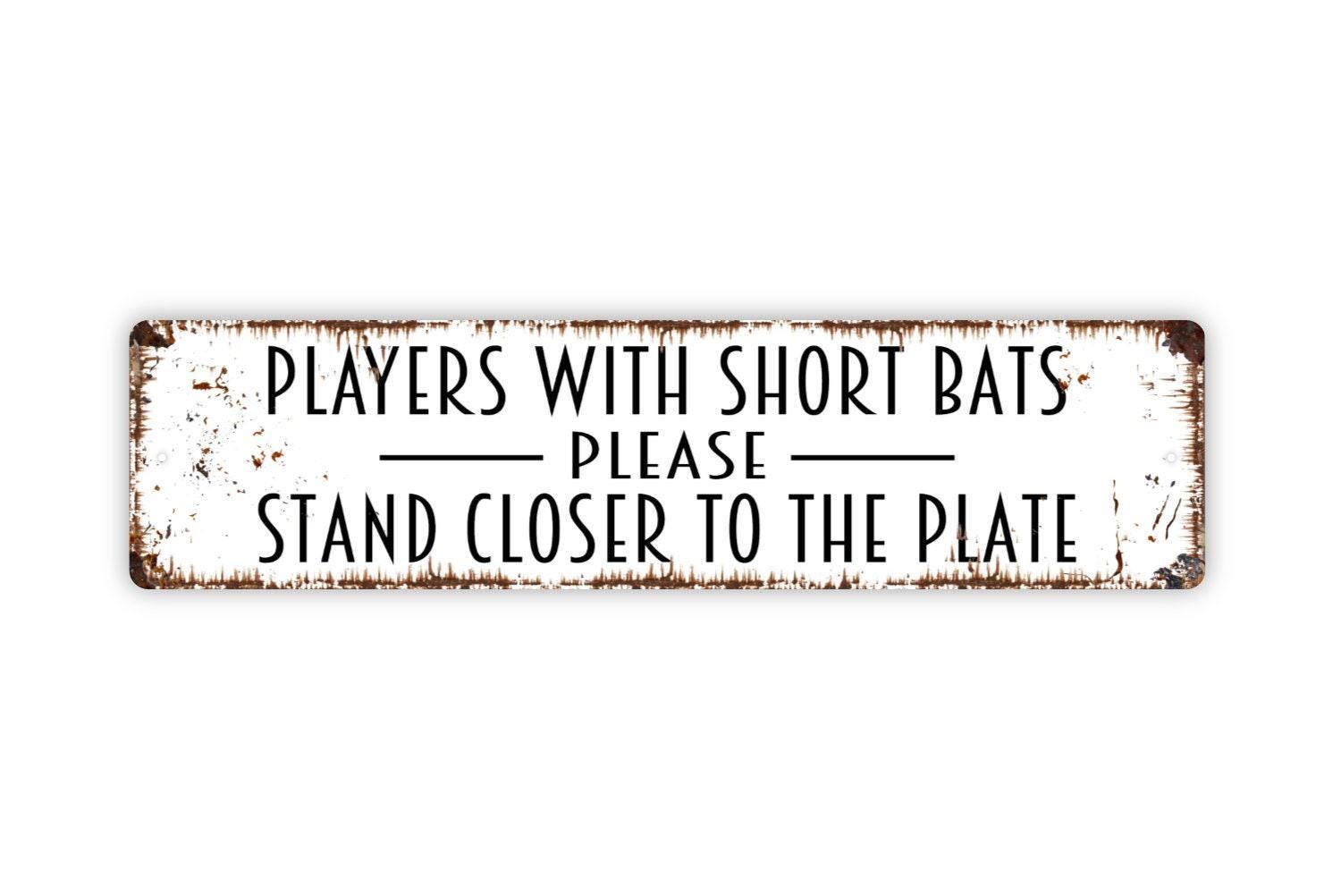 Players With Short Bats Please Stand Closer To The Plate Sign - Funny Boys Bathroom Rustic Metal Street Sign or Door Name Plate Plaque