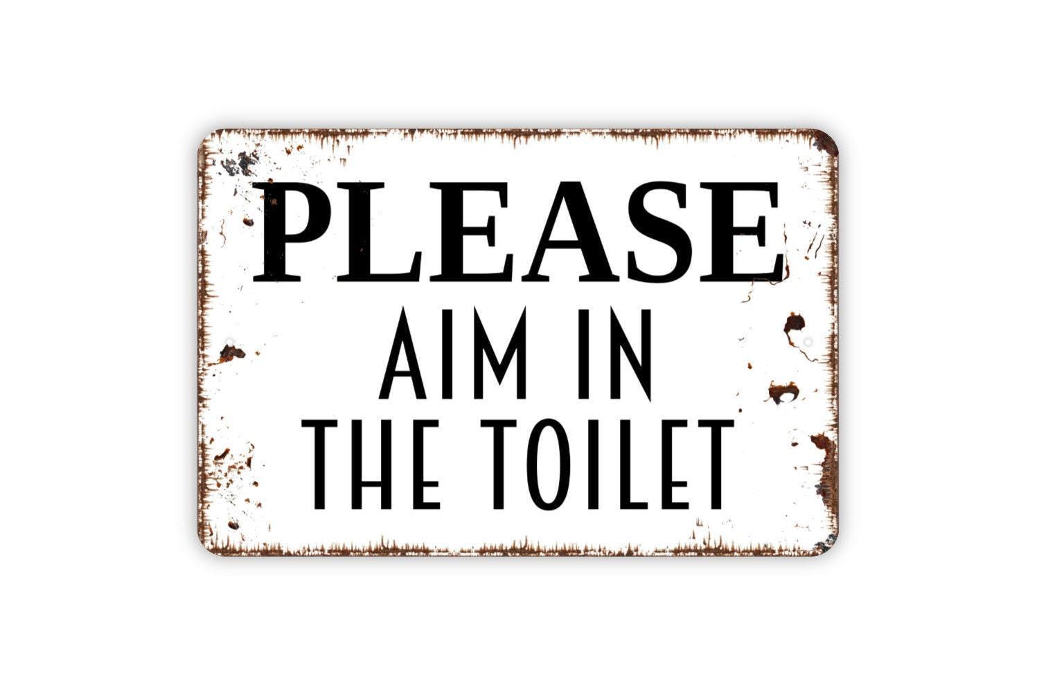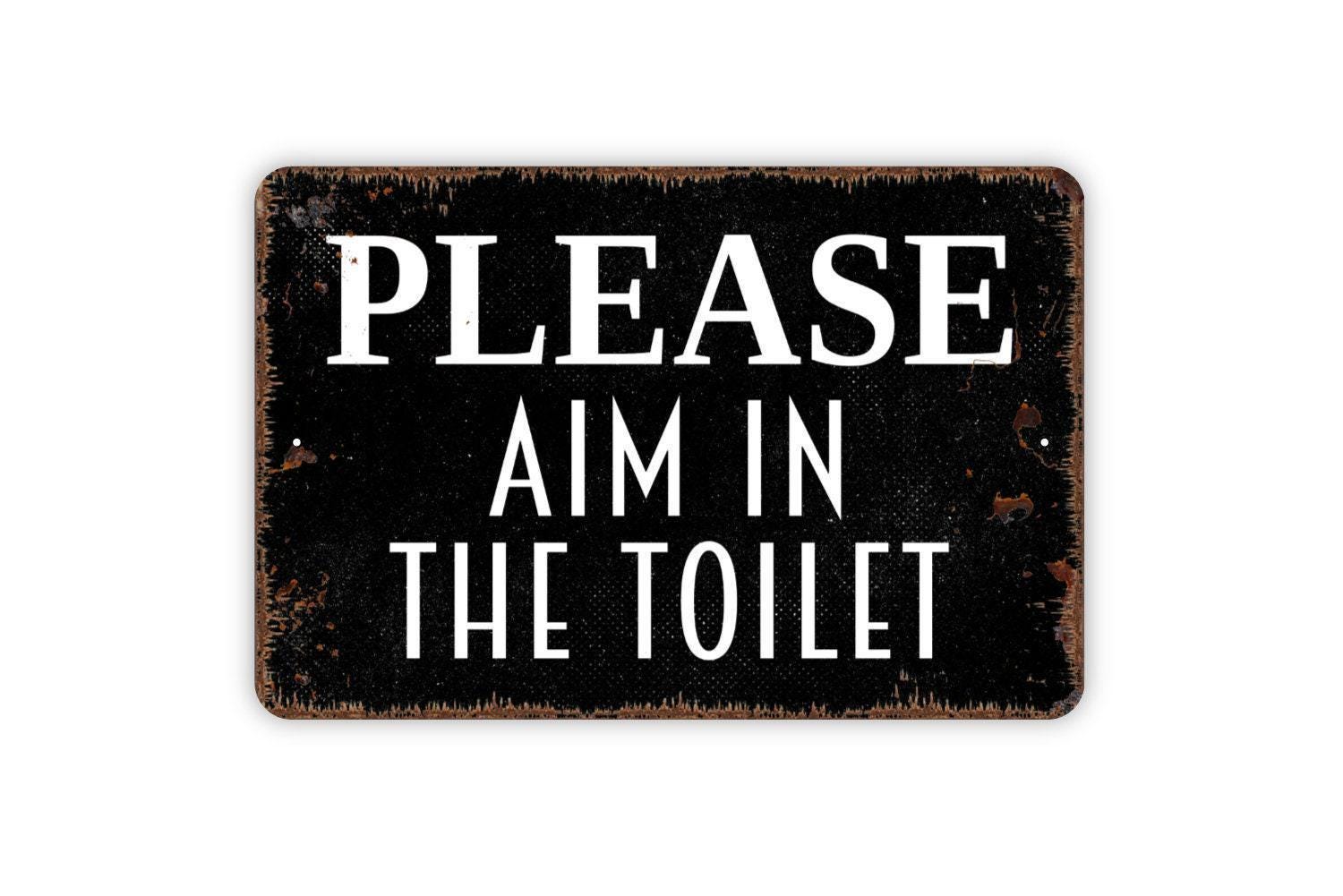 Please Aim In The Toilet Sign - Bathroom Restroom Kids Child Boys Bath Metal Indoor or Outdoor Wall Art
