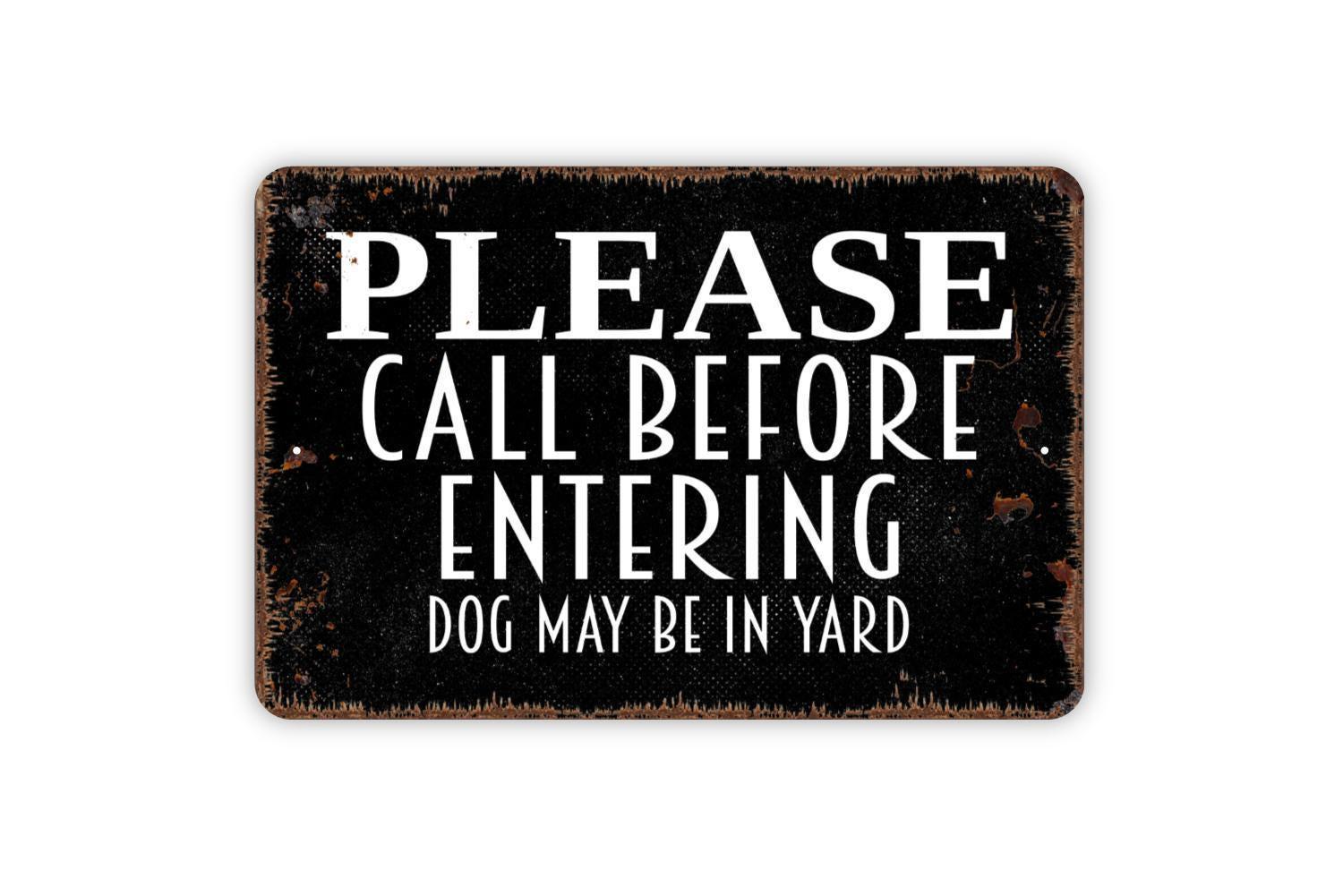 Please Call Before Entering Dog May Be In Yard Sign - Metal Indoor or Outdoor Wall Art