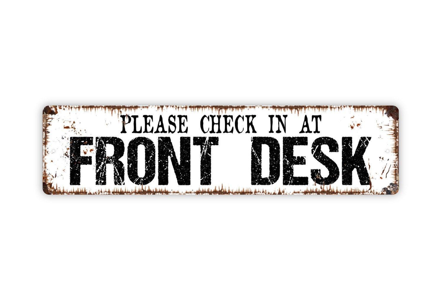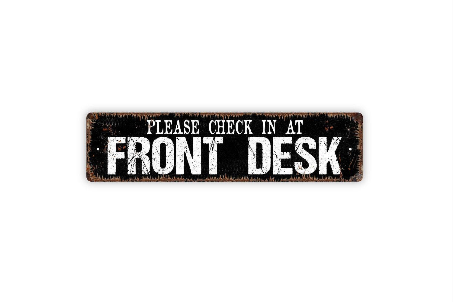 Please Check In At Front Desk Sign | Rustic Reception or Office Wall Sign | Business Lobby Metal Sign or Vinyl Sticker Décor