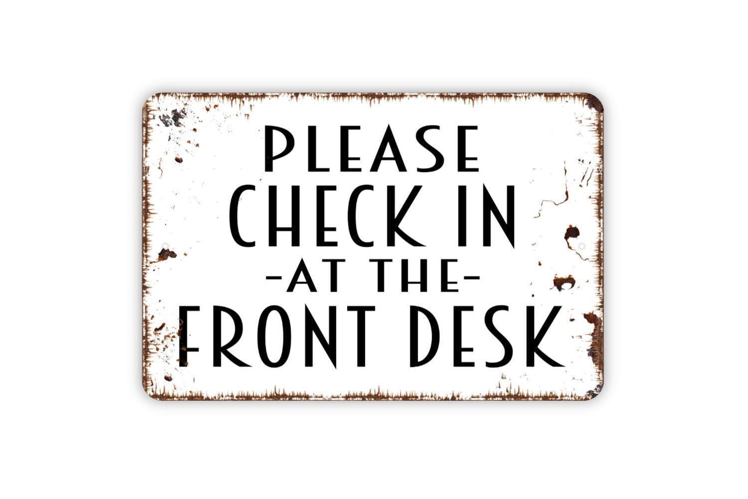 Please Check In At The Front Desk Sign - Metal Sign, Farmhouse Contemporary Modern Wall Metal Sign