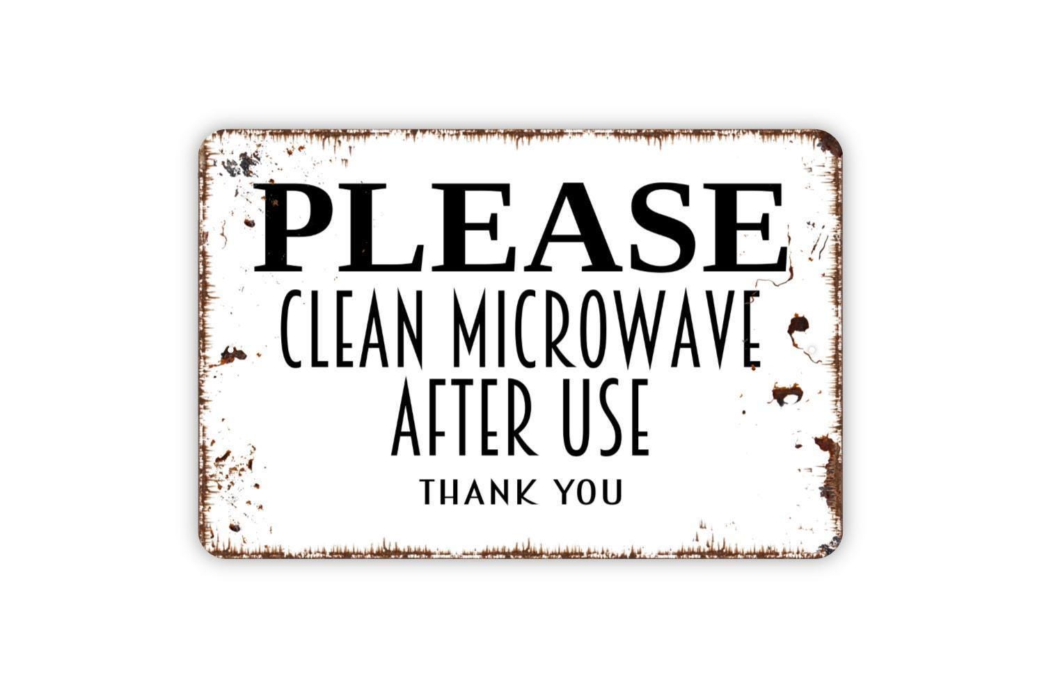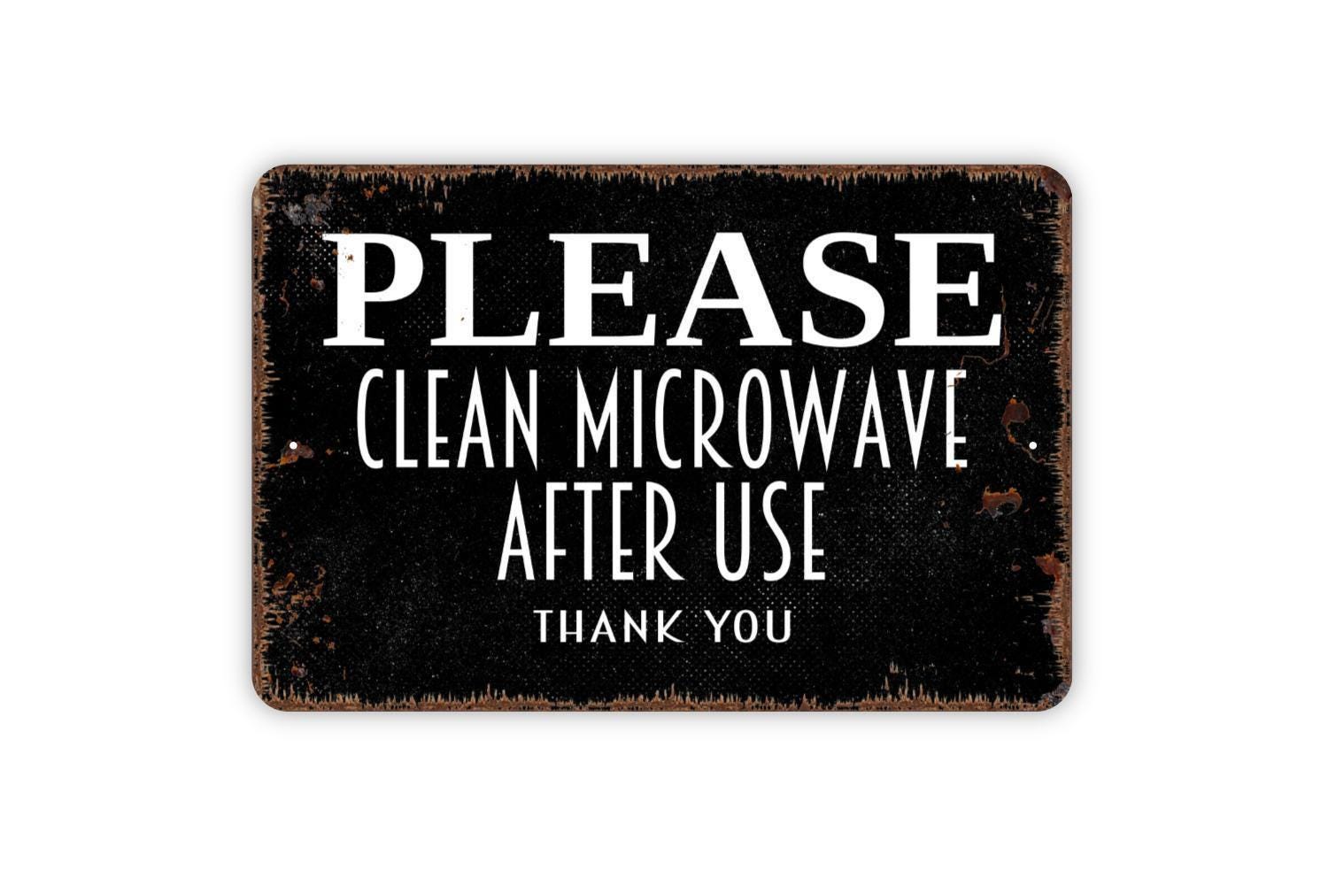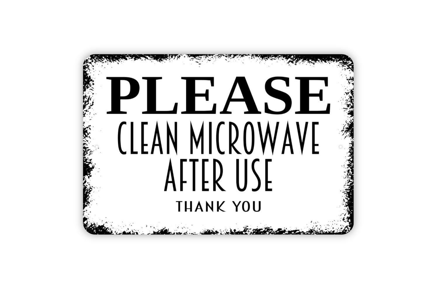 Please Clean Microwave After Use Thank You Sign Metal or Vinyl Sticker | Kitchen Reminder Sign | Office Breakroom Sign | Funny Work Sticker