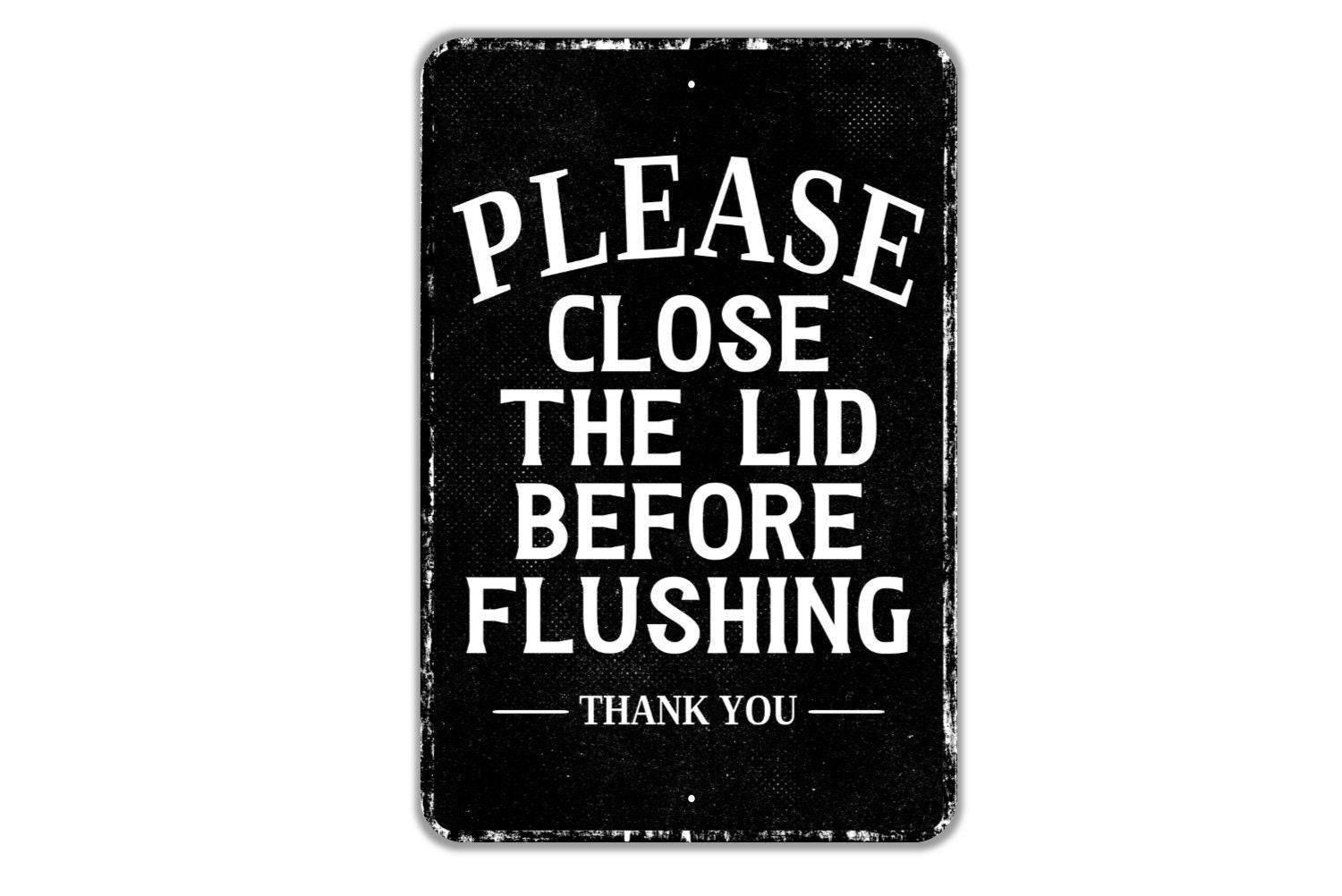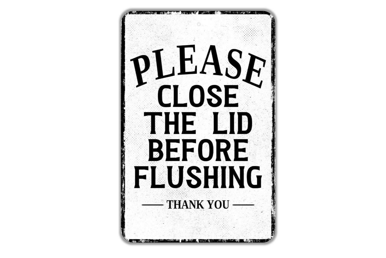 Please Close The Lid Before Flushing Thank You Sign | Bathroom Hygiene Metal Sign or Vinyl Sticker | Restroom, Office, School, Business Sign