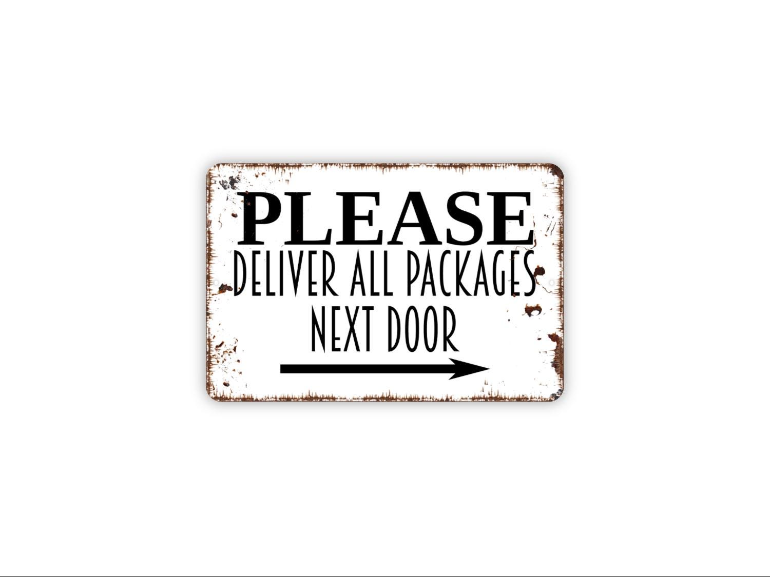 Please Deliver All Packages Next Door With Arrow Sign | Delivery Driver Instruction Metal Sign or Vinyl Sticker for Home or Business