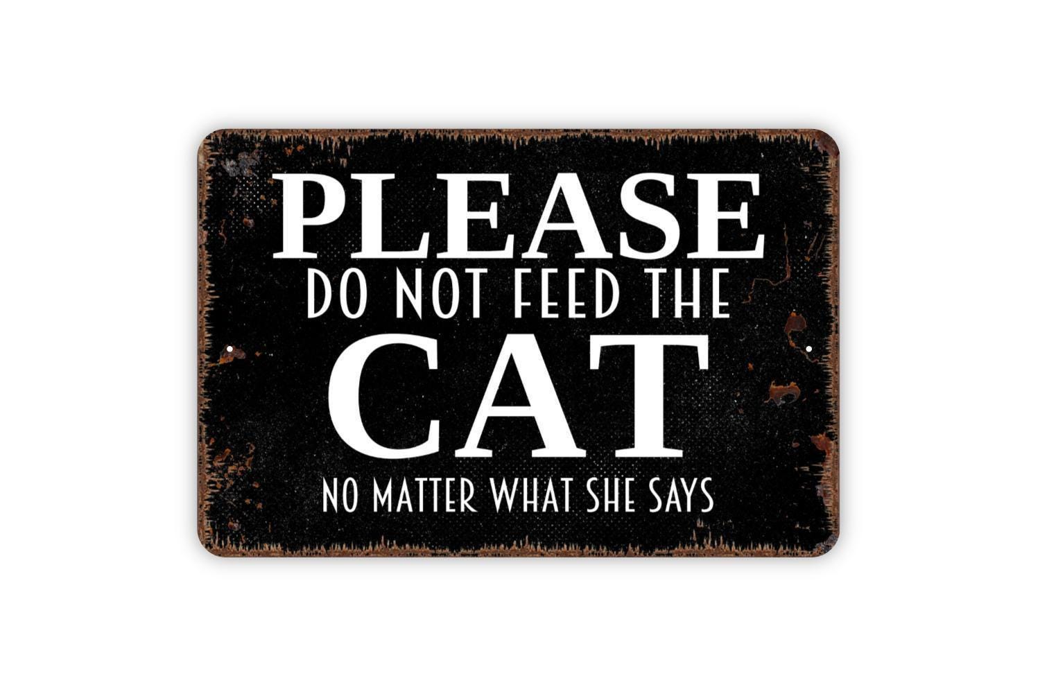 Please Do Not Feed The Cat No Matter What She Says Sign, Funny Feline Kitten Kitty Metal Sign, Farmhouse Wall Decor Modern Wall Metal Sign