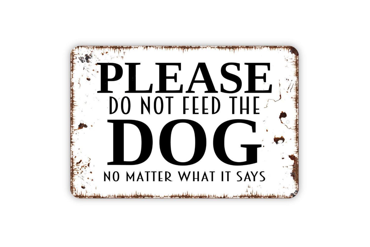 Please Do Not Feed The Dog No Matter What It Says Sign - Funny Metal Indoor or Outdoor Wall Art