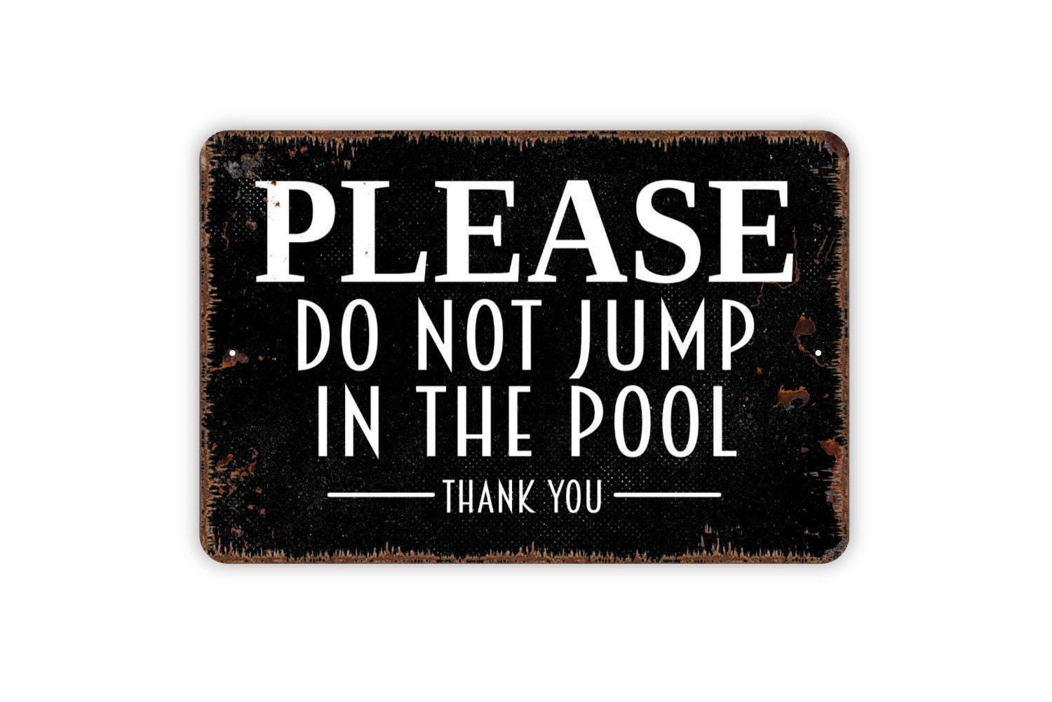 Please Do Not Jump In The Pool Sign – Rustic Swimming Pool Safety Wall Decor – Backyard Patio Water Warning Sign – Metal Sign or Sticker