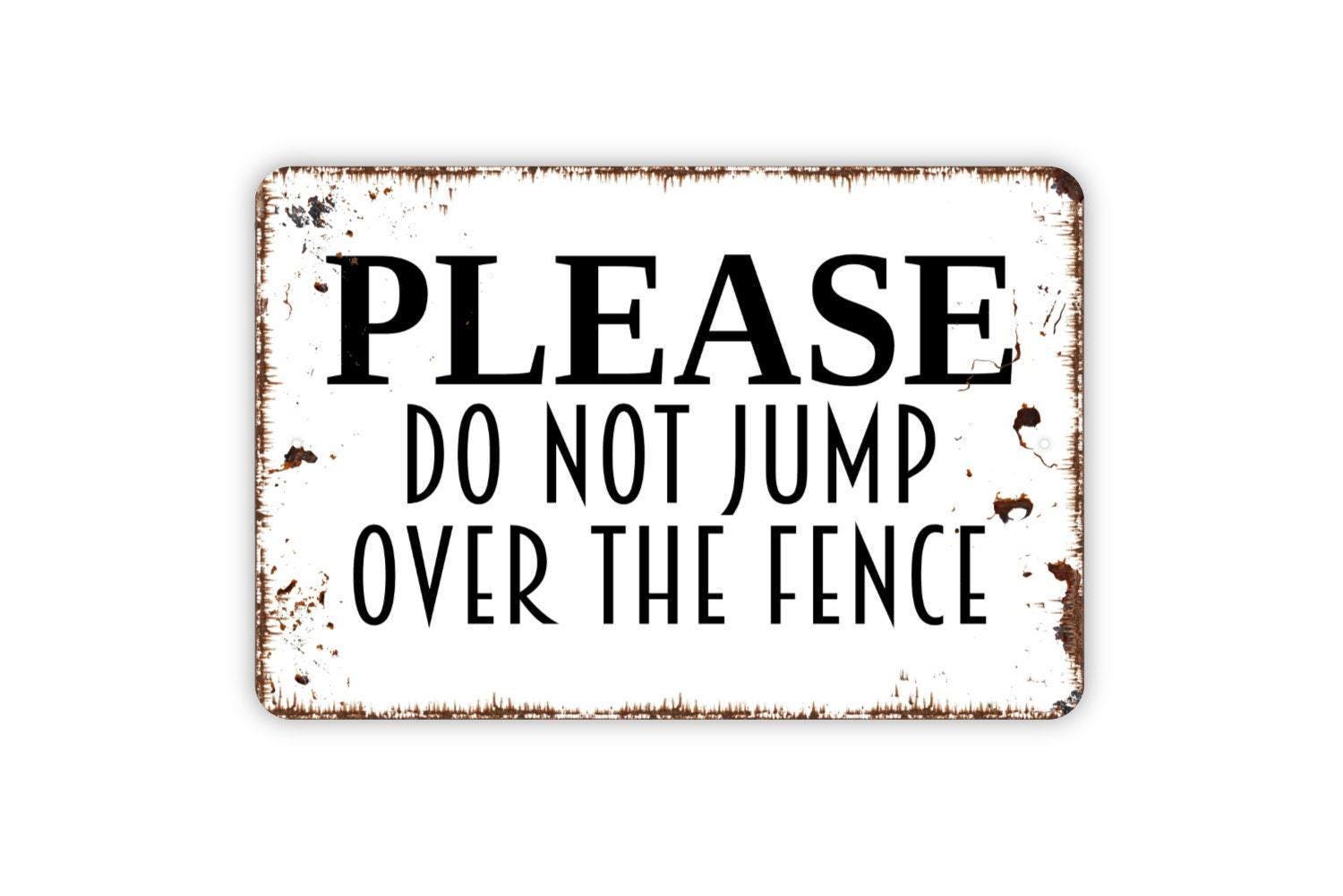 Please Do Not Jump Over The Fence Sign - Keep Off Gate Metal Wall Art - Indoor or Outdoor