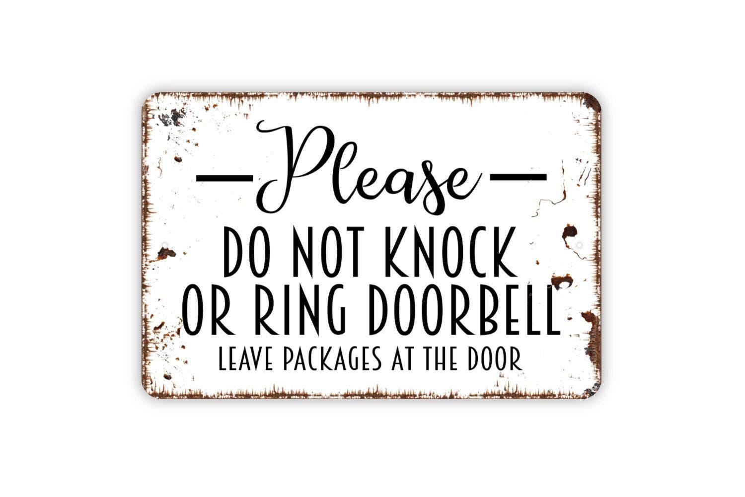 Please Do Not Knock Or Ring Doorbell Leave Packages At The Door Sign - Metal Instructions Wall Art - Indoor or Outdoor