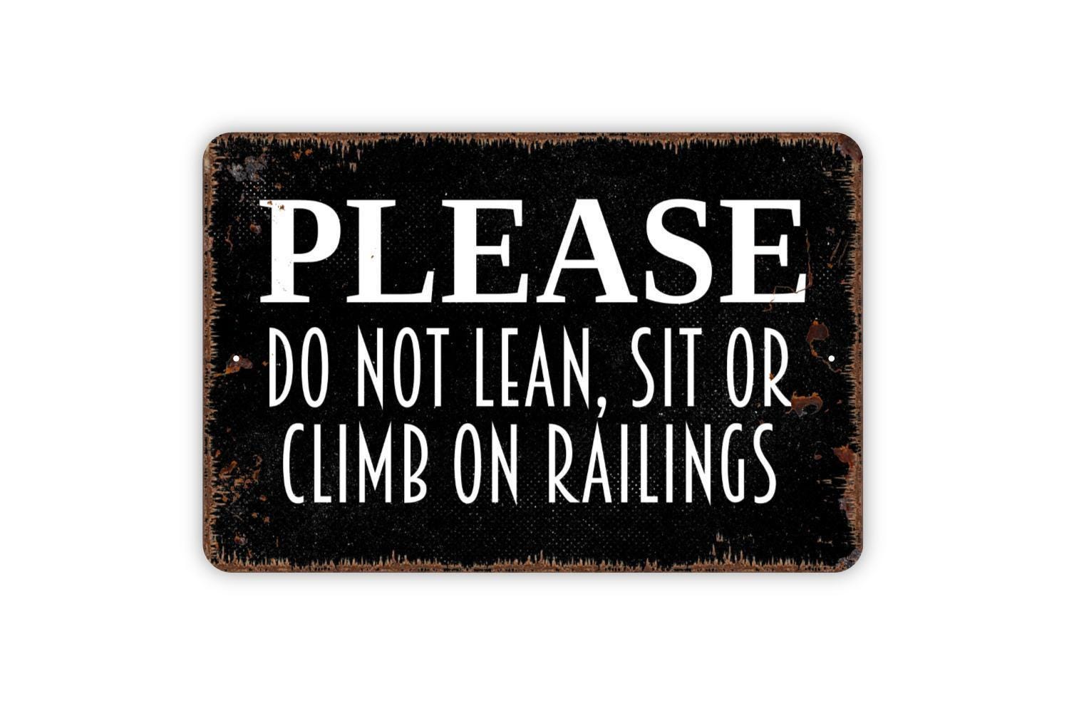 Please Do Not Lean, Sit Or Climb On Railings Sign - Keep Off Fence Gate Metal Wall Art - Indoor or Outdoor