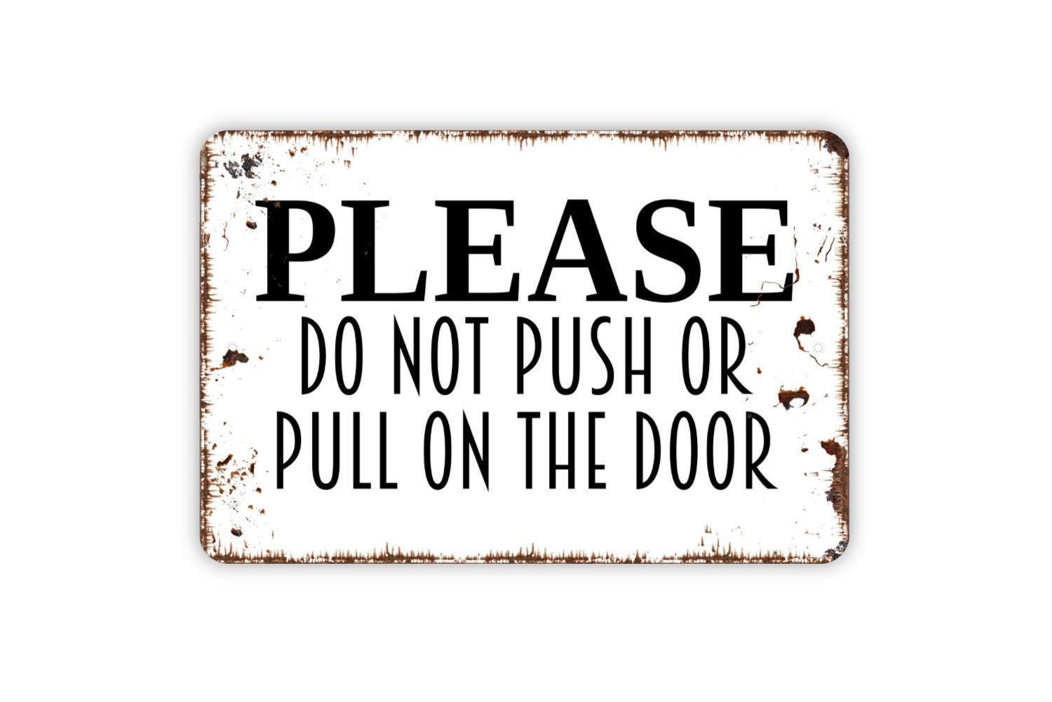 Please Do Not Push Or Pull On Door Sign - Entryway Notice Outdoor Or Indoor Metal Sign Wall Art