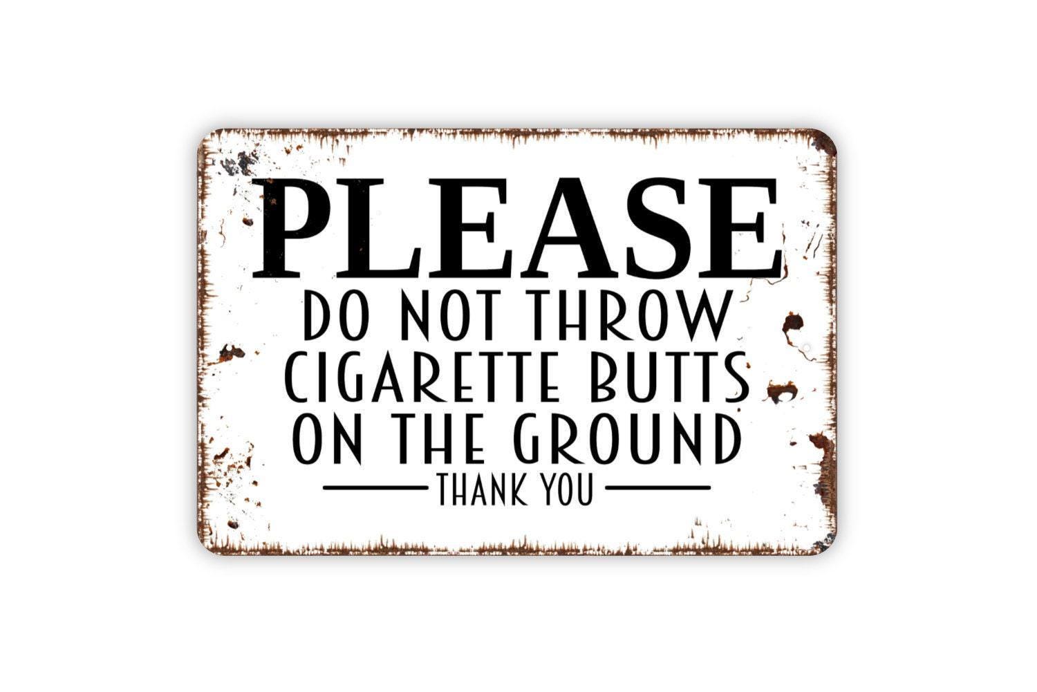 Please Do Not Throw Cigarette Butts On The Ground Thank You Sign - Metal Indoor or Outdoor Wall Art Metal Sign