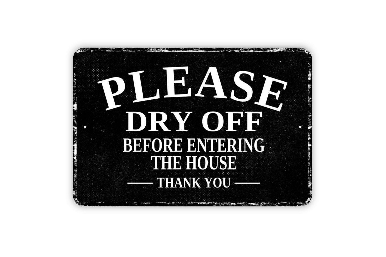 Keep your home clean with our “Please Dry Off Before Entering The House Thank You” sign. Perfect for pools, beaches, spas, bathrooms, or backyards, this polite reminder helps prevent wet floors and keeps indoor spaces tidy.