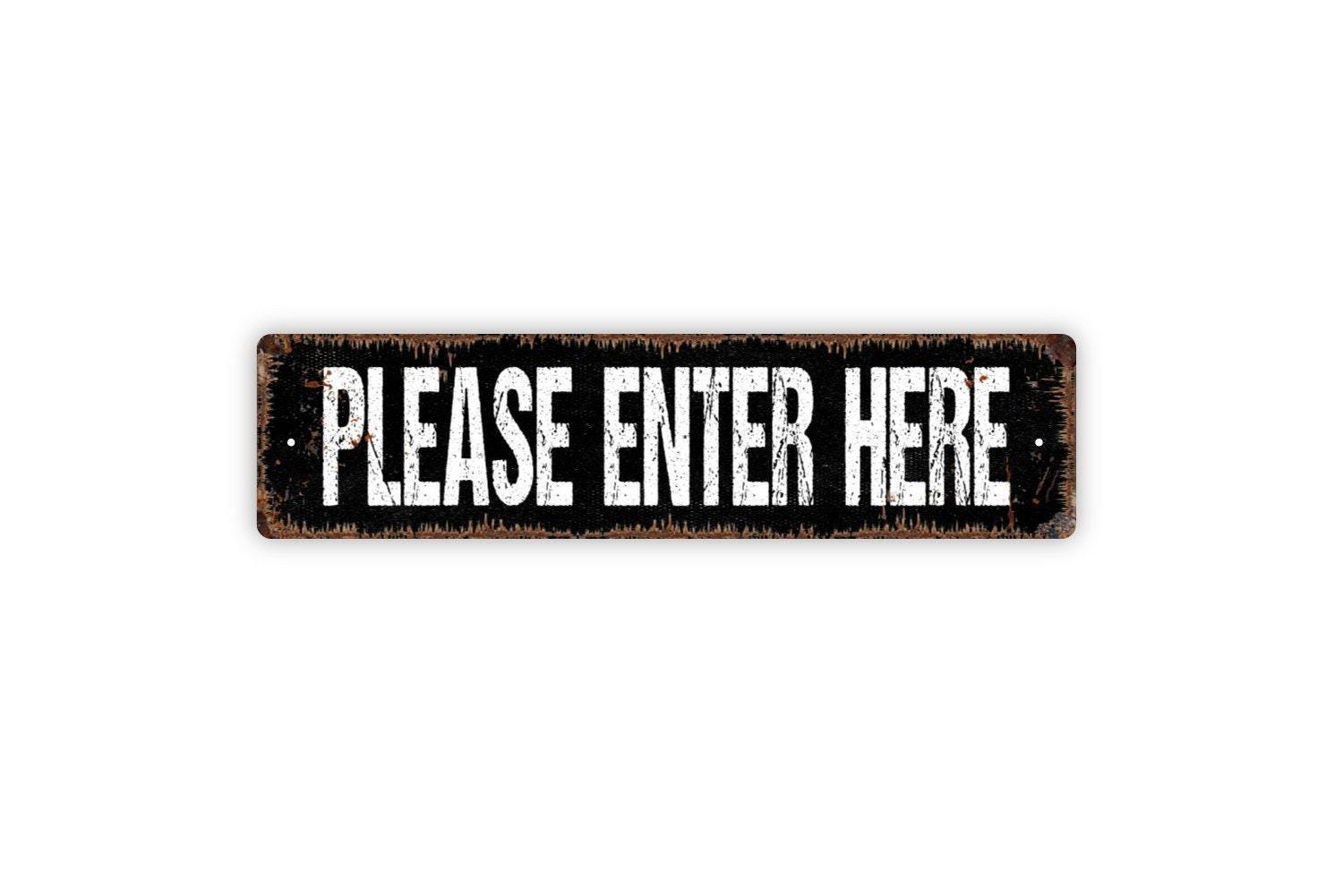 Please Enter Here Sign | Entryway or Business Door Sign | Metal Wall Sign or Vinyl Sticker for Office, School, or Event | Entrance Sign
