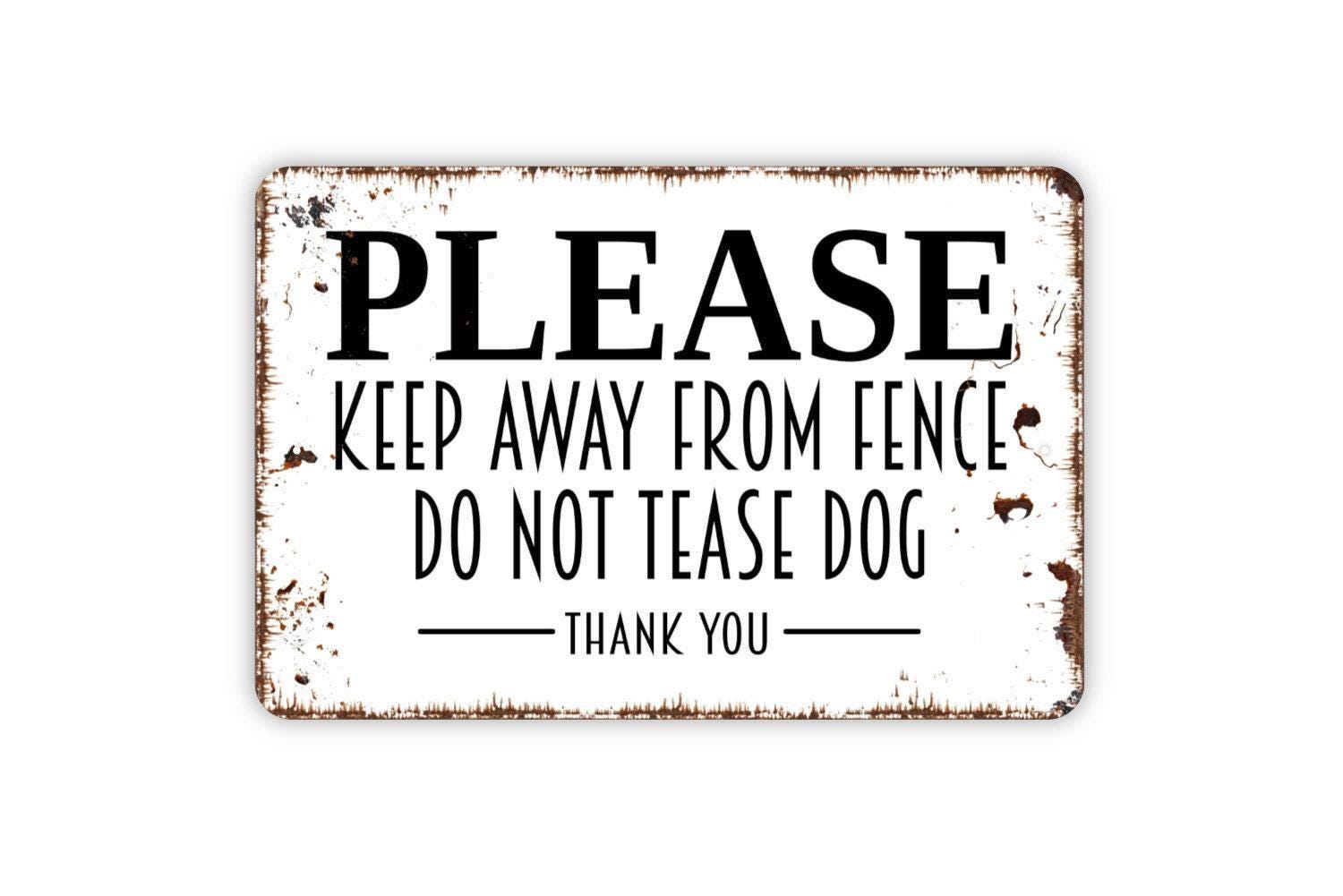 Please Keep Away From Fence Do Not Tease Dog Thank You Sign – Outdoor Yard Safety Sign – Dog Warning Wall Sign – Metal Sign or Vinyl Sticker