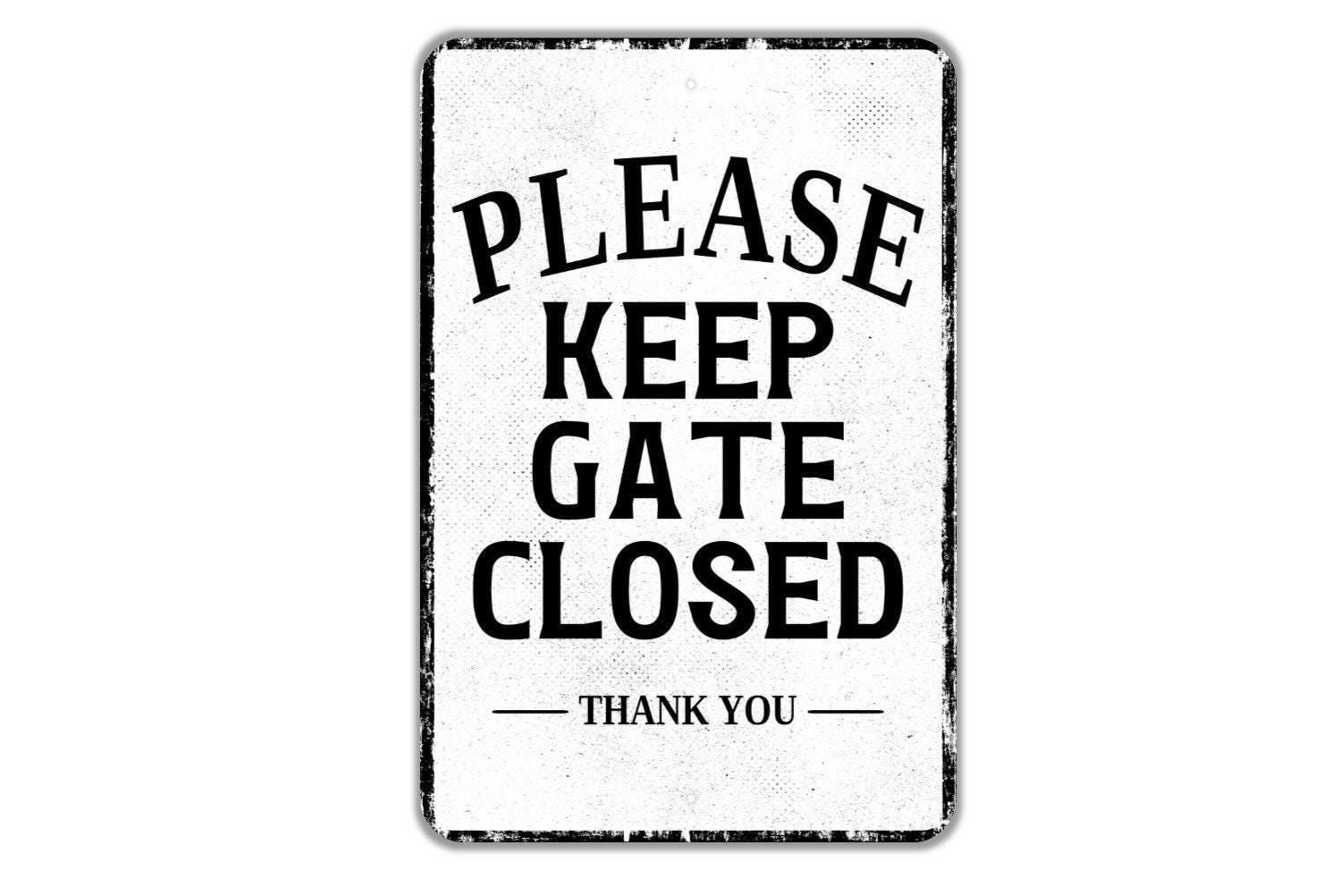 Remind guests and visitors with this Please Keep Gate Closed Thank You Sign, available in multiple sizes as metal wall art or vinyl stickers. Perfect for gardens, fences, dog gates, or property entrances, this sign provides a clear and polite message. A practical and decorative addition for homeowners, pet owners, and outdoor spaces.