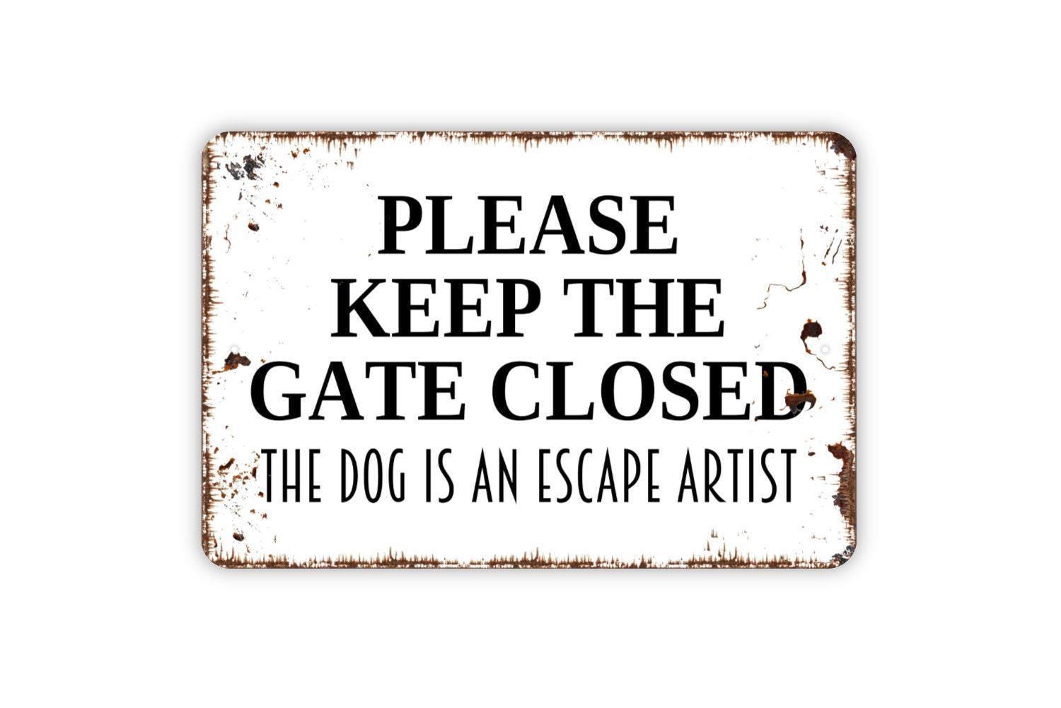 Please Keep The Gate Closed The Dog Is An Escape Artist Sign – Funny Pet Safety Yard Sign – Outdoor Dog Warning Metal Sign or Vinyl Sticker