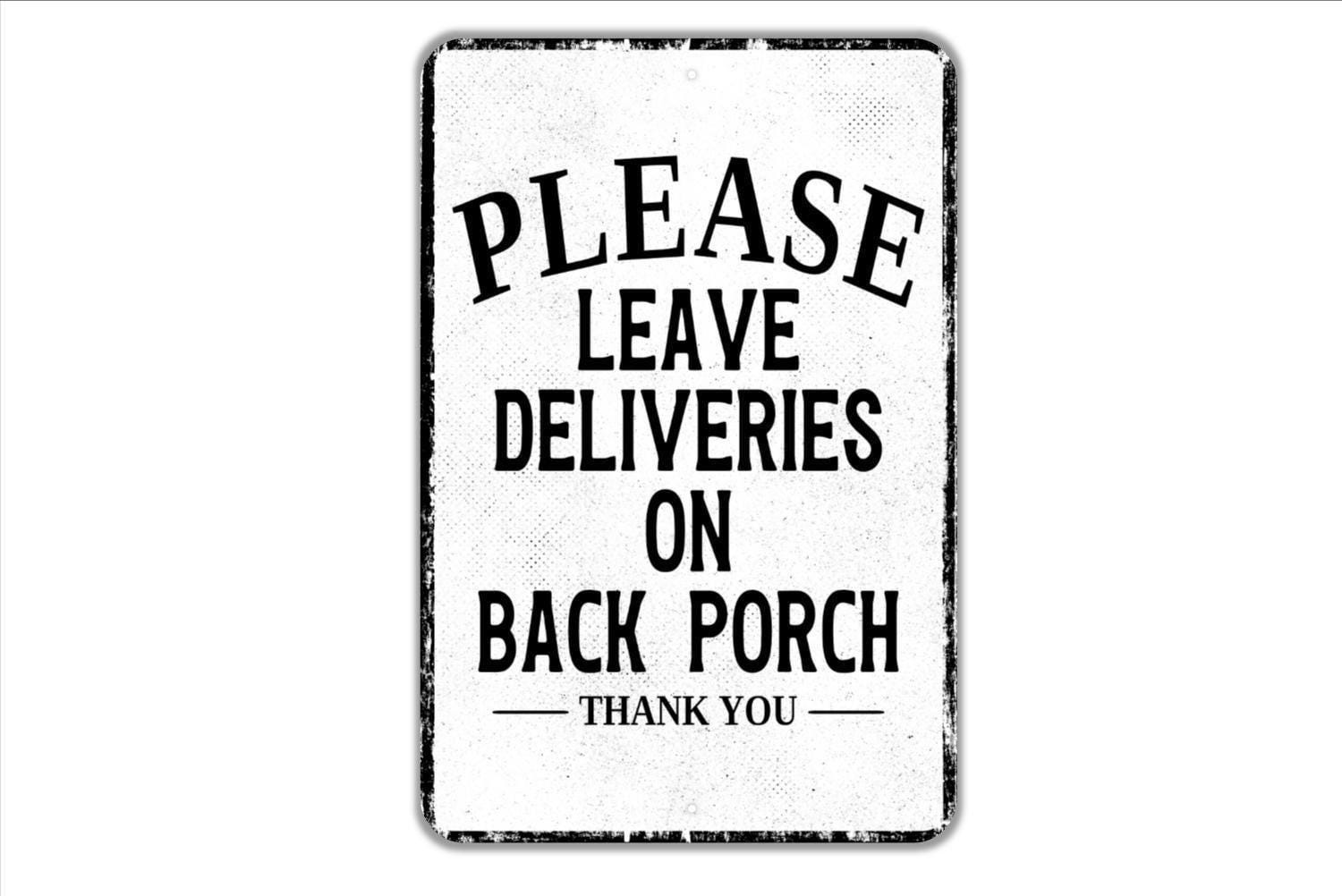 Please Leave Deliveries On Back Porch Thank You Sign Metal Wall Art or Vinyl Sticker for Home, Entryway, Package Drop, Delivery Driver