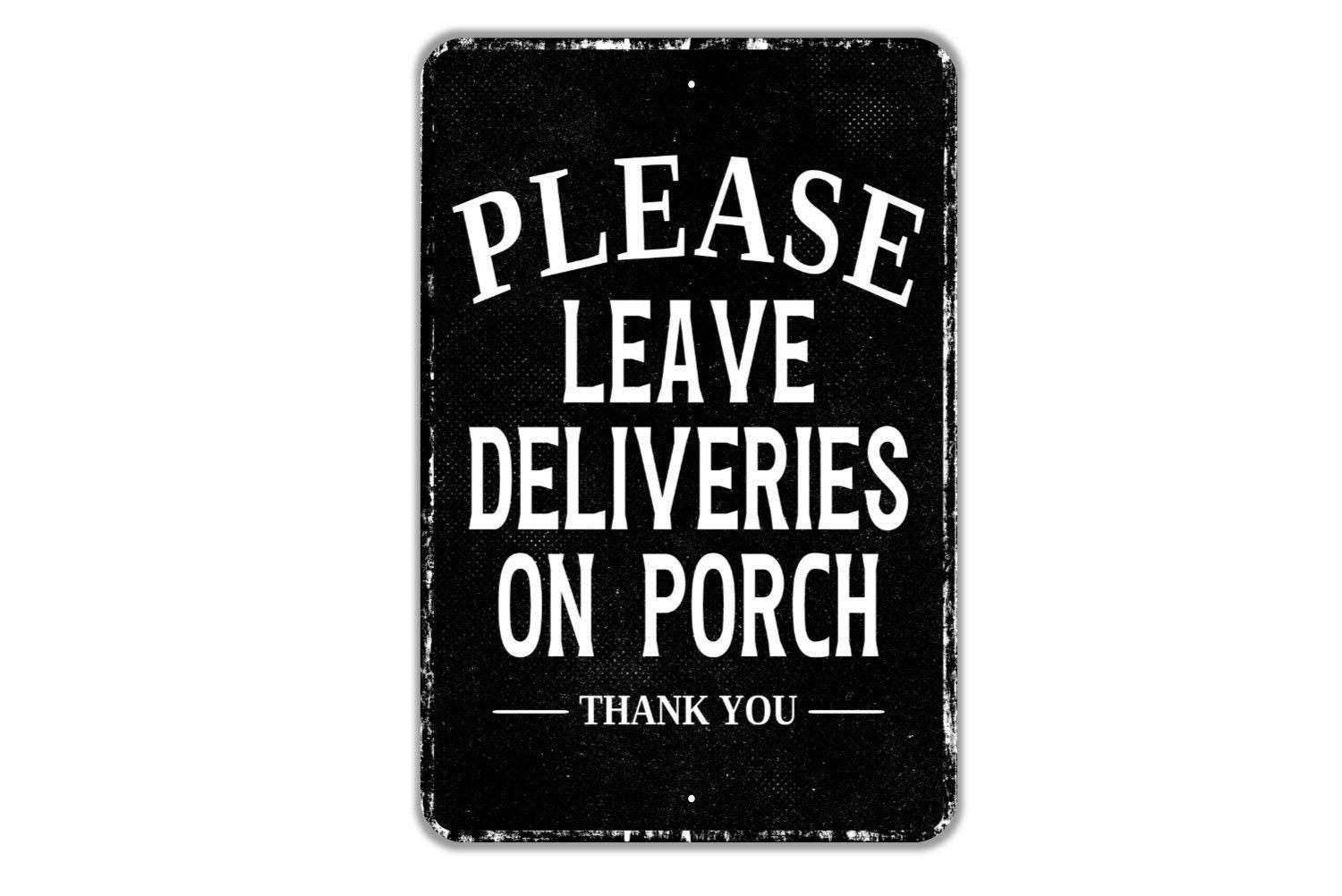 Please Leave Deliveries On Porch Thank You Sign Metal Wall Art or Vinyl Sticker for Front Porch, Home Entry, Delivery Instructions