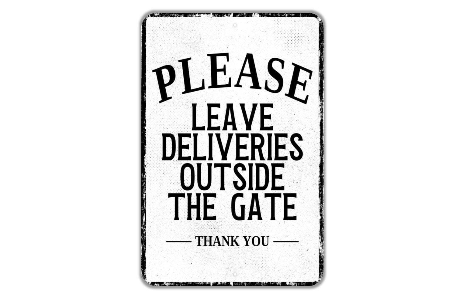 Please Leave Deliveries Outside The Gate Thank You Sign Metal Wall Art or Vinyl Sticker for Home, Fence, Yard, Package Drop, Delivery Driver