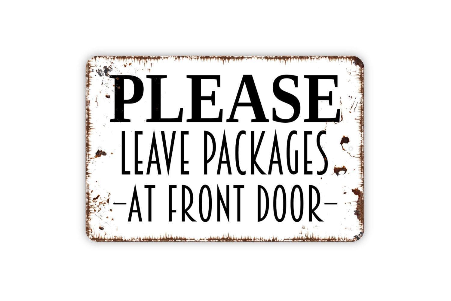 Please Leave Packages At Front Door Sign | Delivery Drop Off Sign | Metal Sign or Vinyl Sticker for Porch Patio Entryway Home