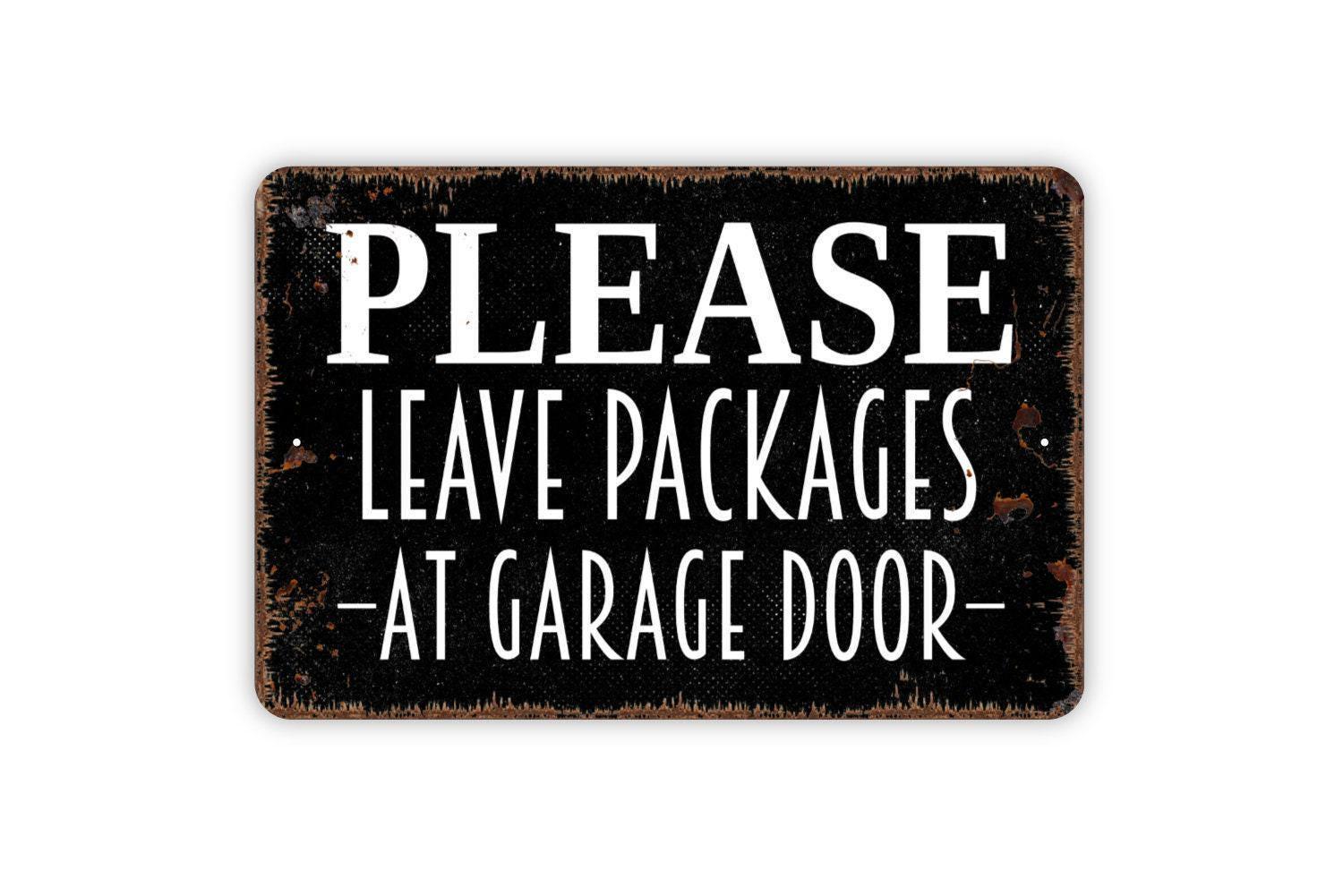 Please Leave Packages At Garage Door Sign | Rustic Delivery Wall Decor | Home or Business Sign | Custom Metal Sign or Vinyl Sticker