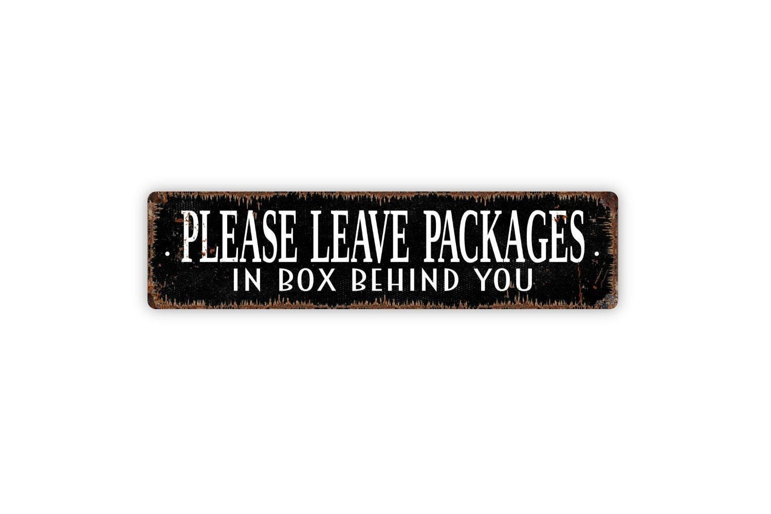 Please Leave Packages In The Box Behind You Sign - Vinyl Sticker Or Metal Street Sign or Door Name Plate Plaque