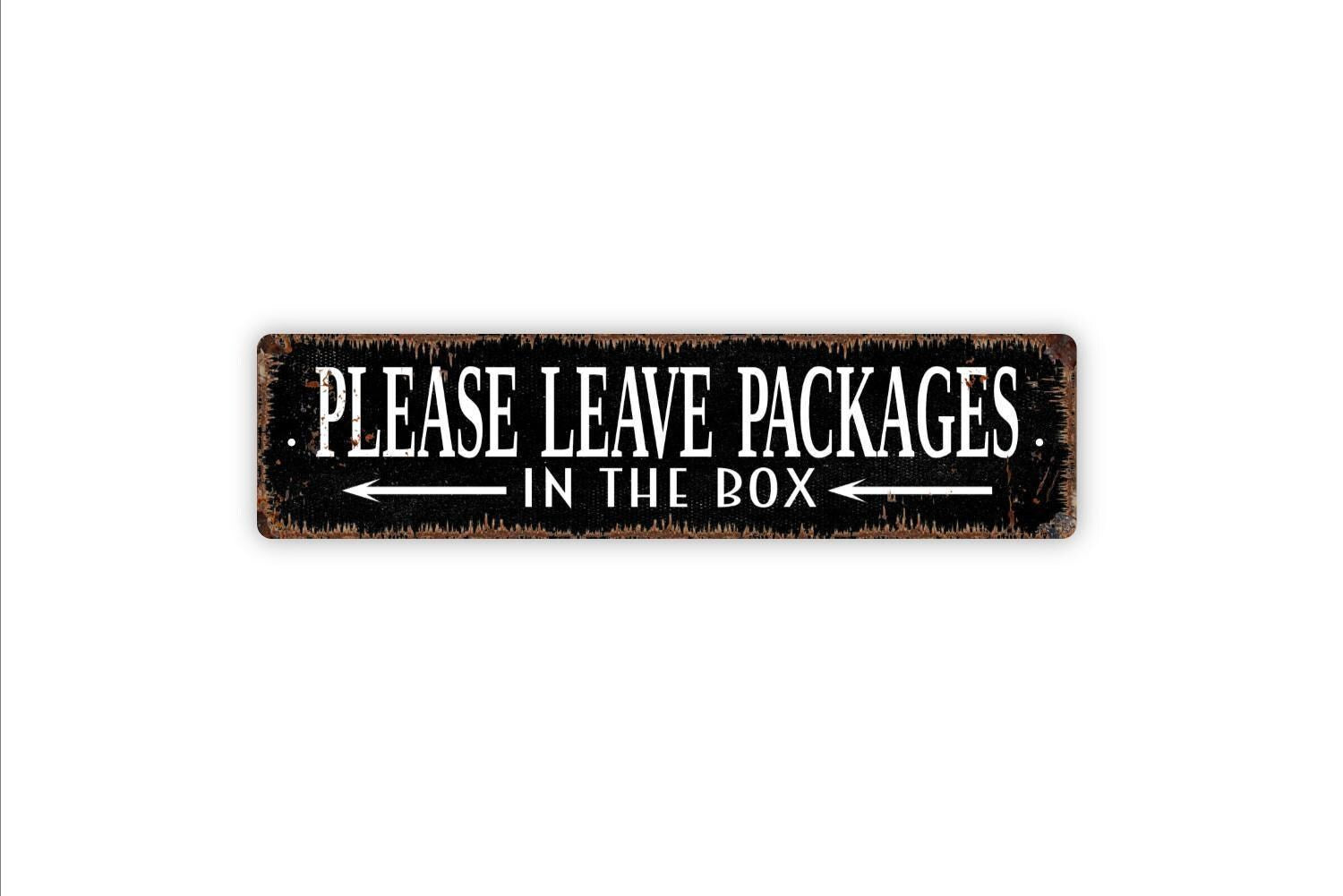 Please Leave Packages In The Box With Left Or Right Arrows Sign - Vinyl Sticker Or Metal Street Sign or Door Name Plate Plaque