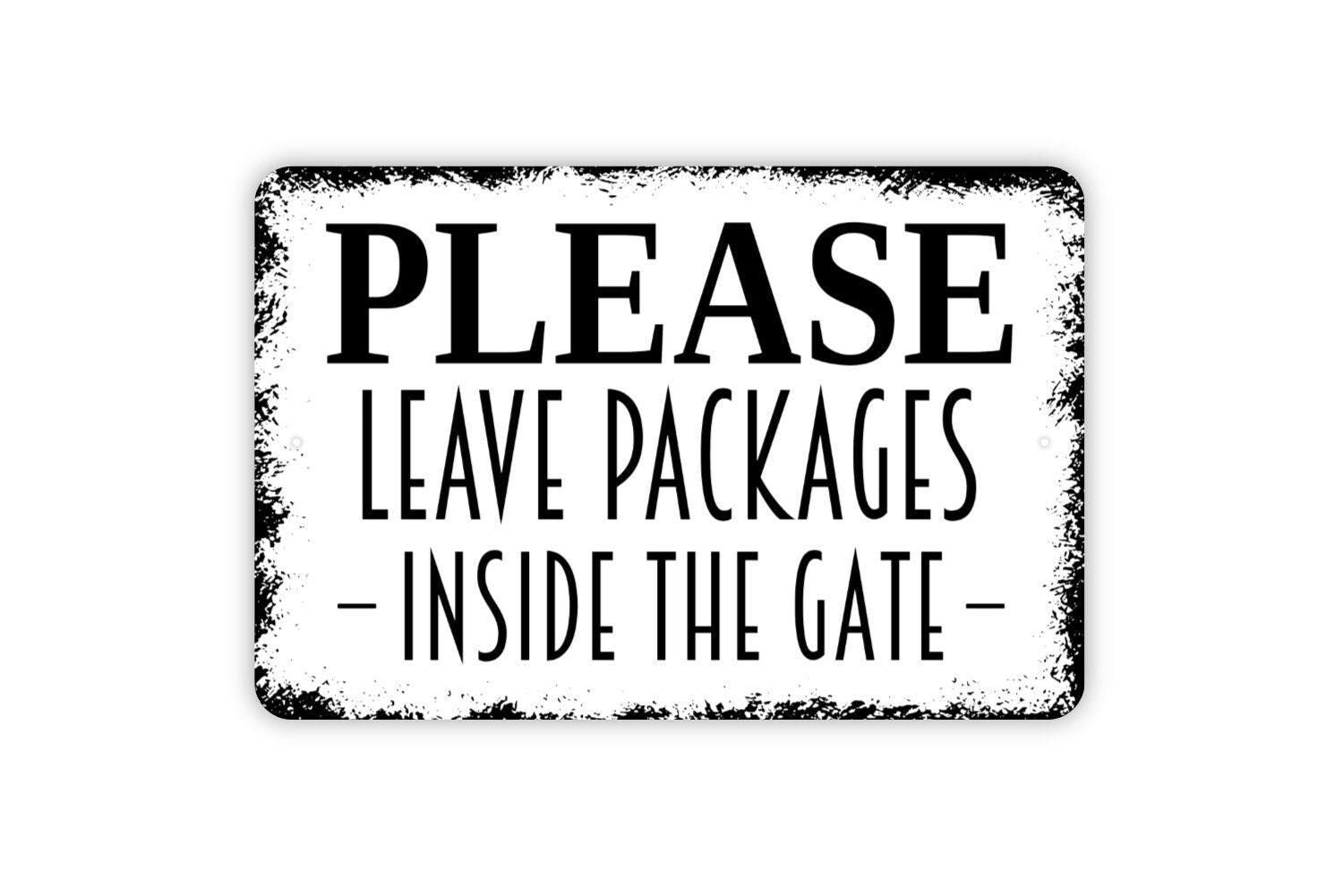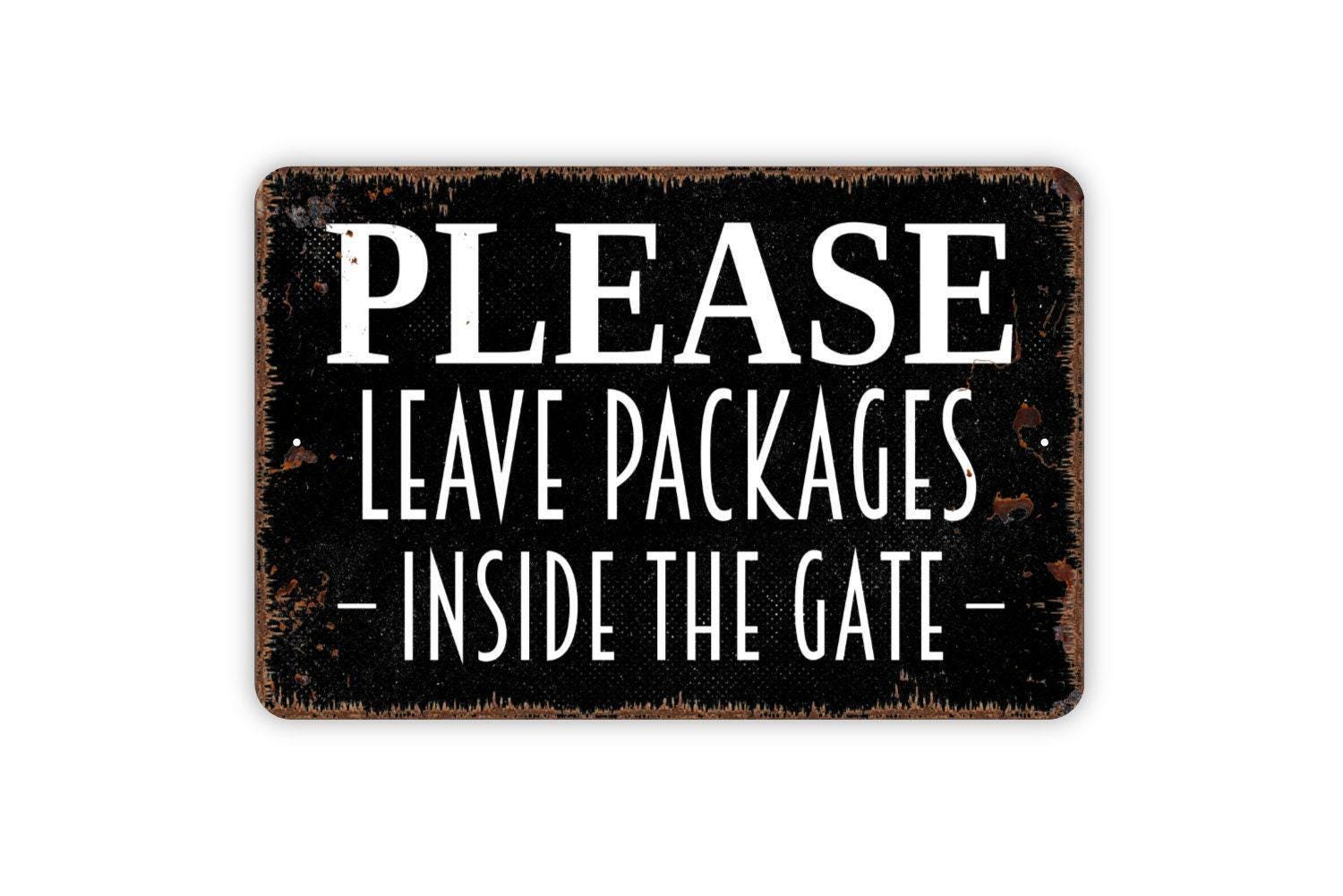 Please Leave Packages Inside The Gate Metal Sign - Delivery Drivers Deliveries Drop Off Outdoor Or Indoor Metal Sign Wall Art