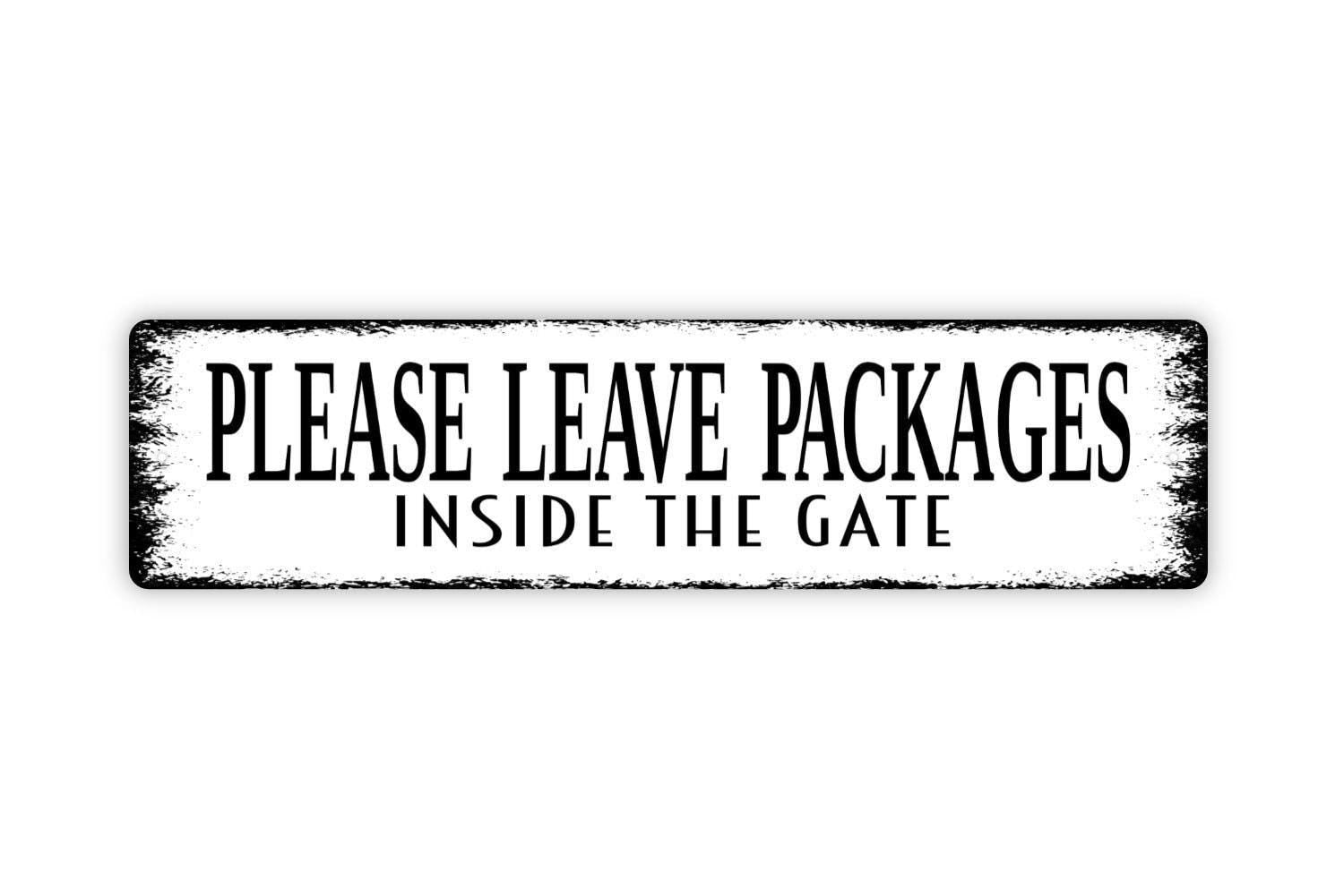 Please Leave Packages Inside The Gate Sign for Home or Business | Delivery Drop Off Parcel Wall Sign | Metal Delivery Sign or Vinyl Sticker