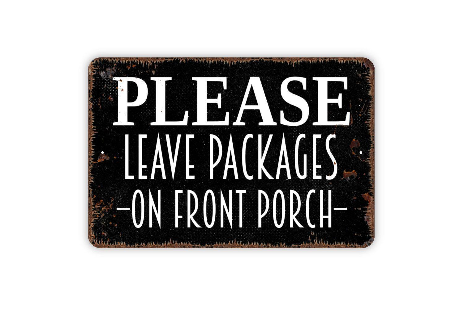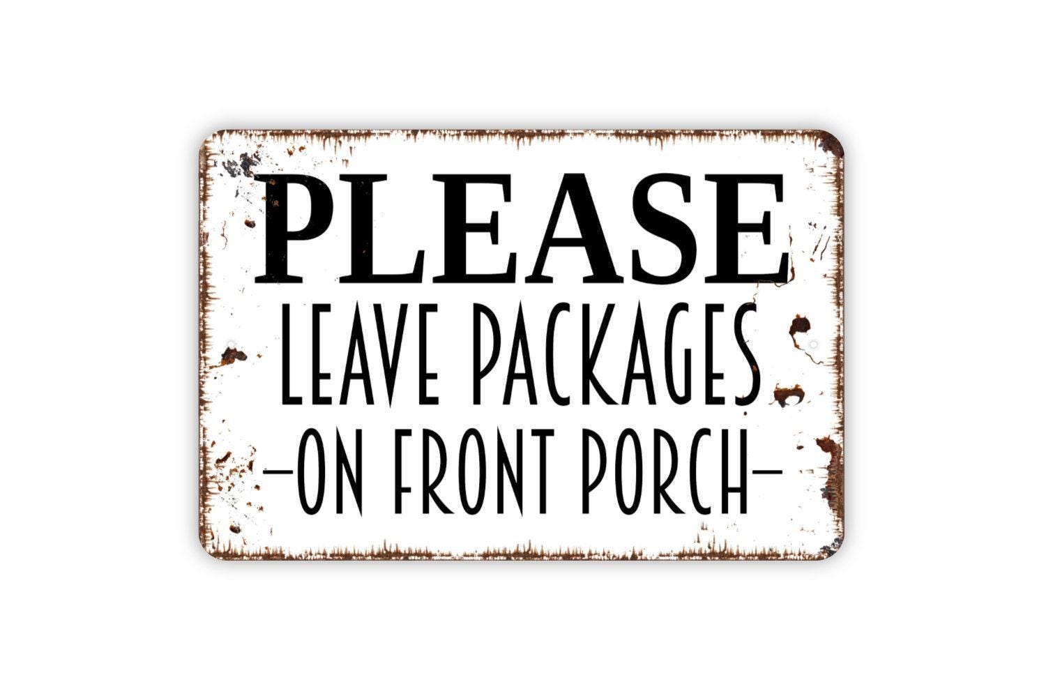 Please Leave Packages On Front Porch Sign - Delivery Instructions Metal Indoor or Outdoor Wall Art