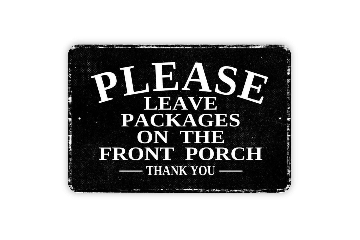 Please Leave Packages On The Front Porch Thank You Sign Metal Wall Art or Vinyl Sticker for Home Entry, Porch Delivery, Package Drop Decor