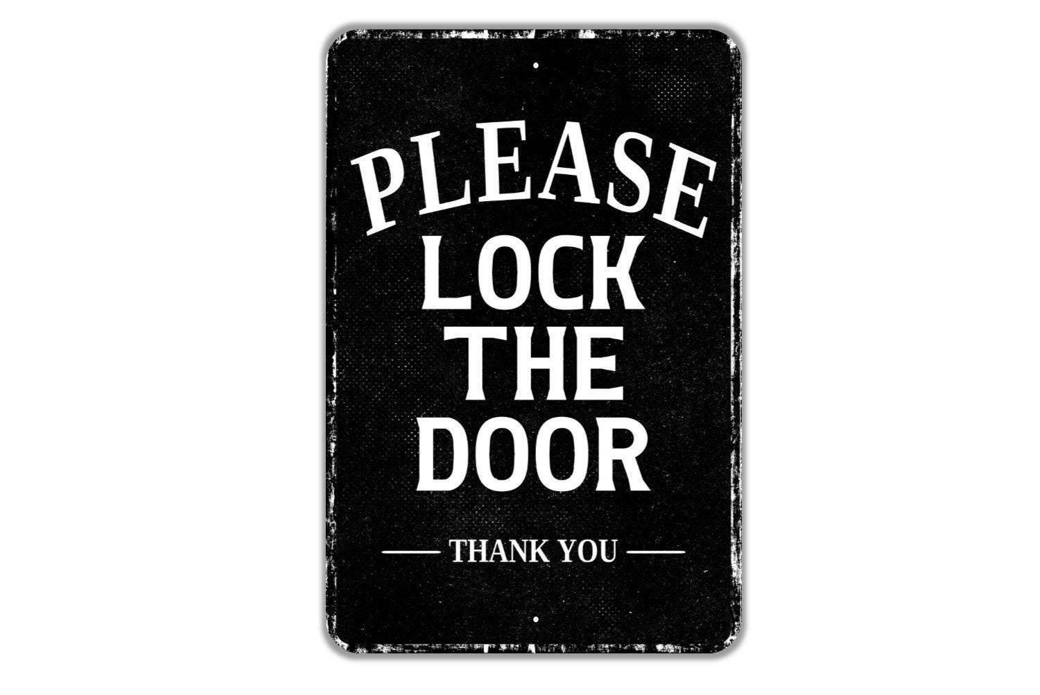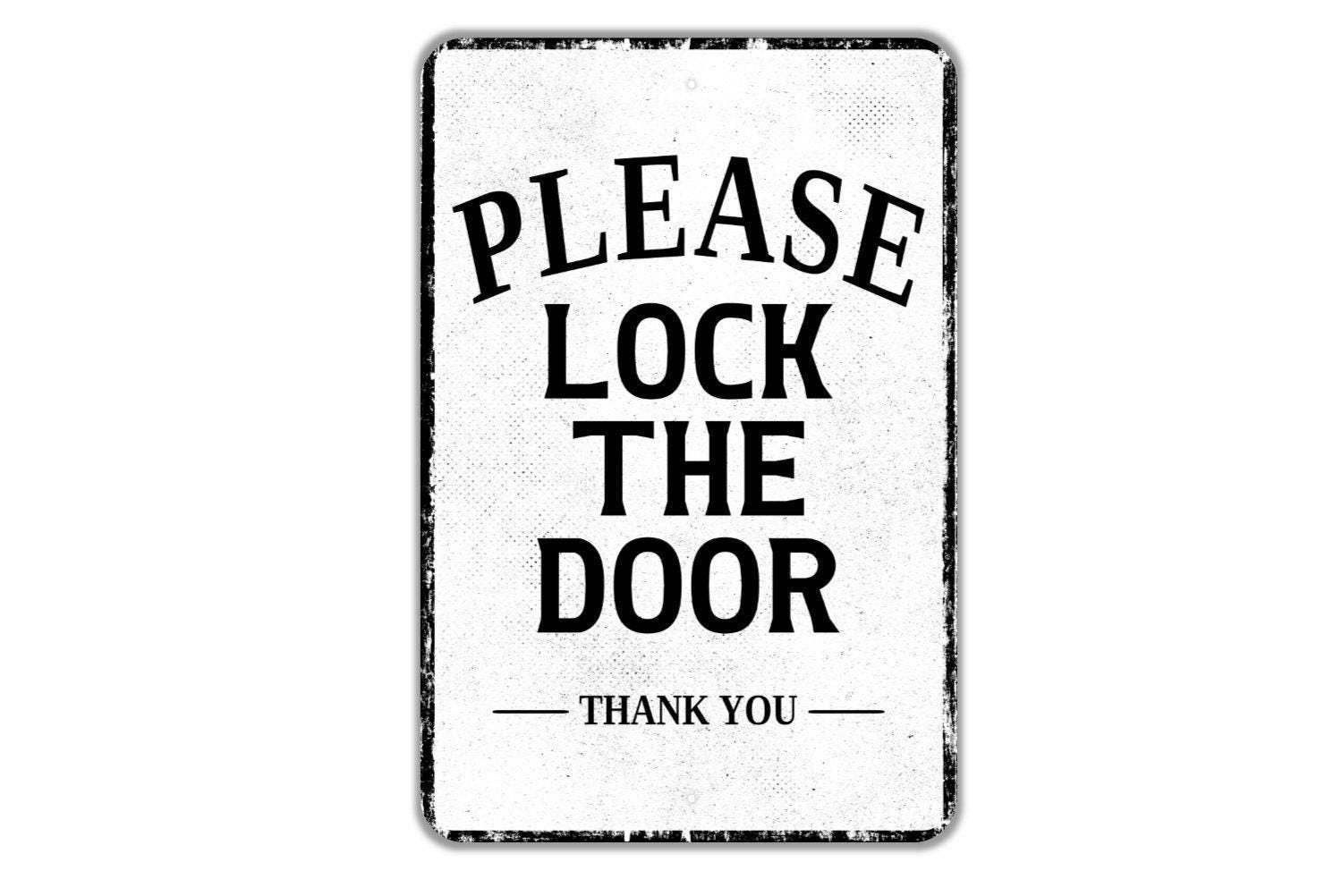 Please Lock The Door Thank You Sign | Door Reminder Sign for Home, Office, or Business | Metal Sign or Vinyl Sticker in Multiple Sizes