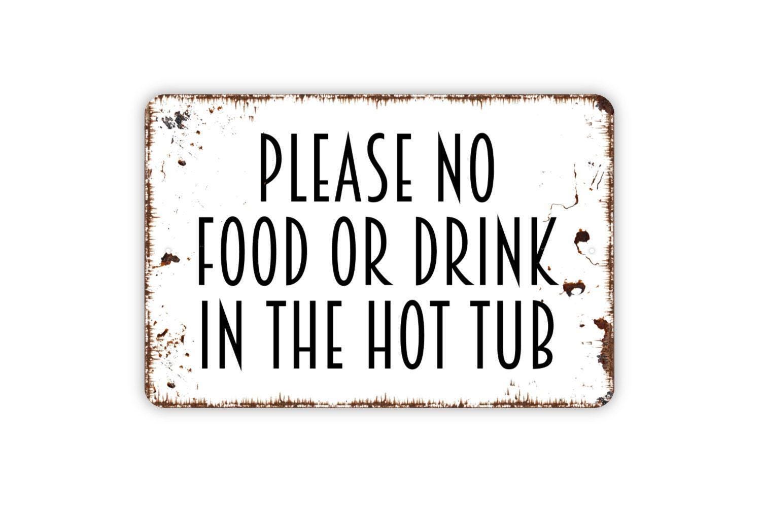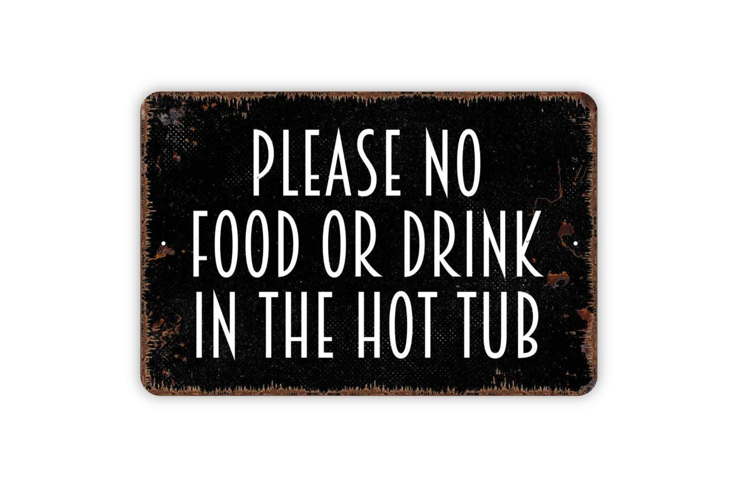Please No Food or Drink in the Hot Tub Sign - Indoor or Outdoor Metal Wall Art