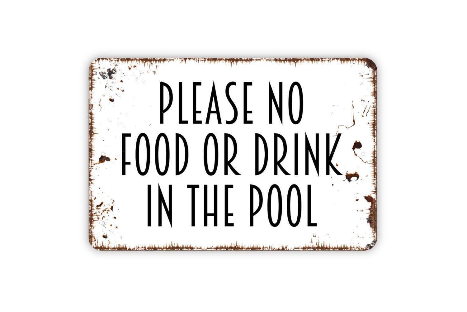 Please No Food Or Drink In The Pool Sign - Indoor or Outdoor Metal Wall Art