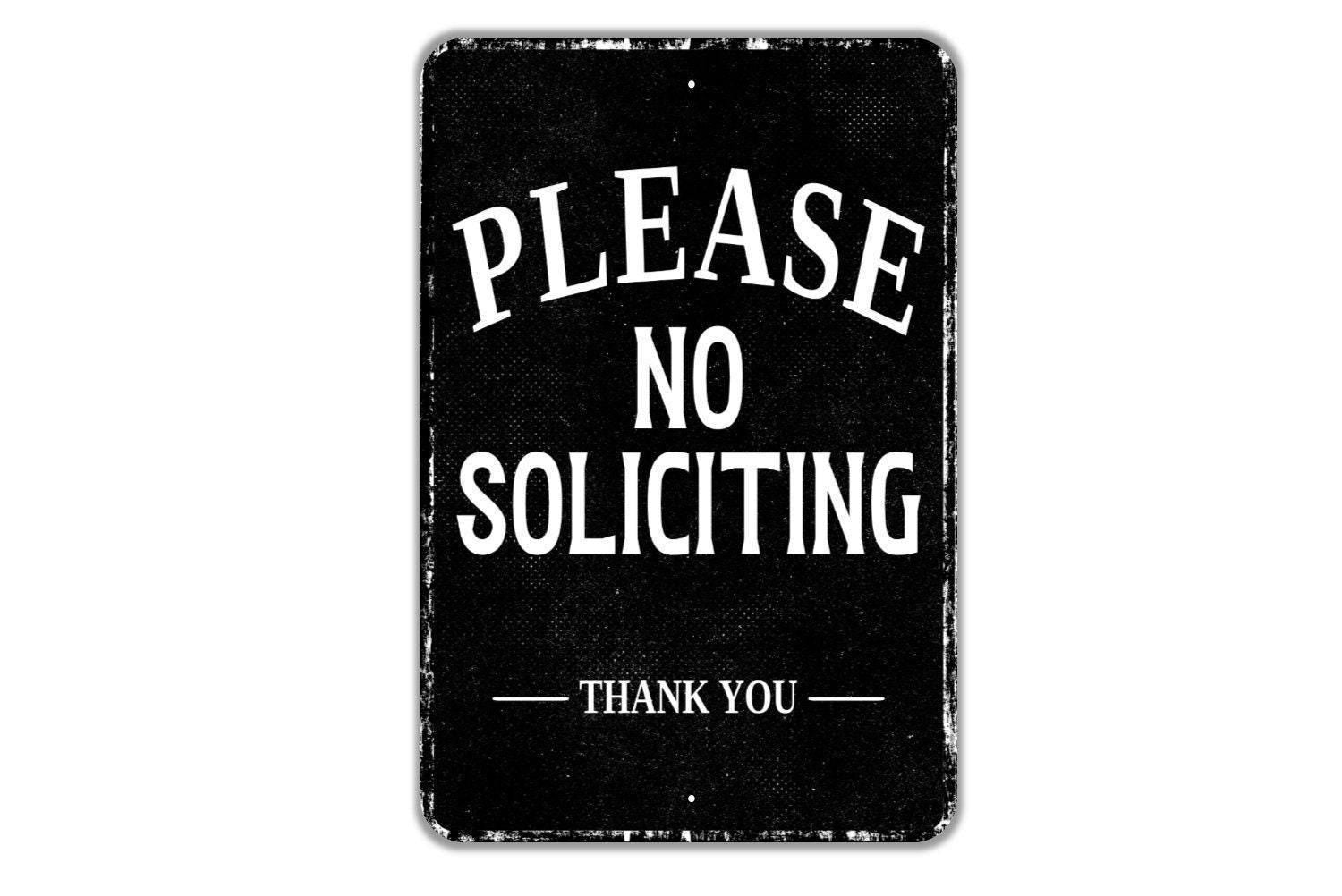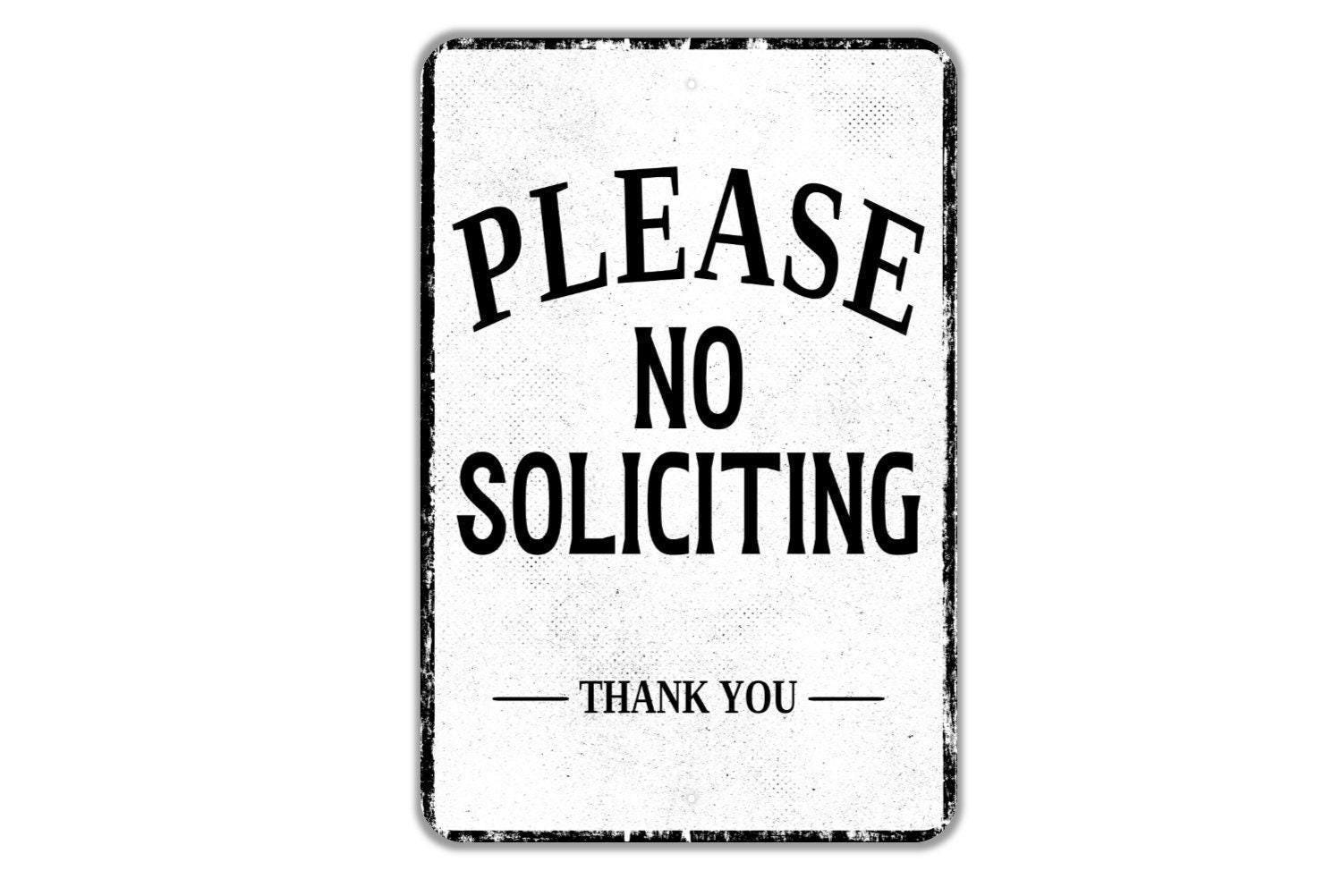 Please No Soliciting Thank You Sign | Property Metal Sign or Vinyl Sticker | Home, Office, Yard, Business, Door, Fence, Gate, Entryway Sign