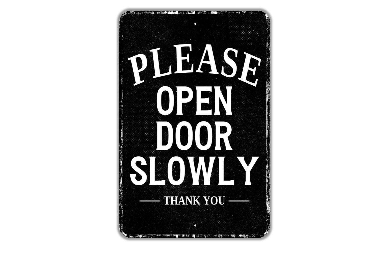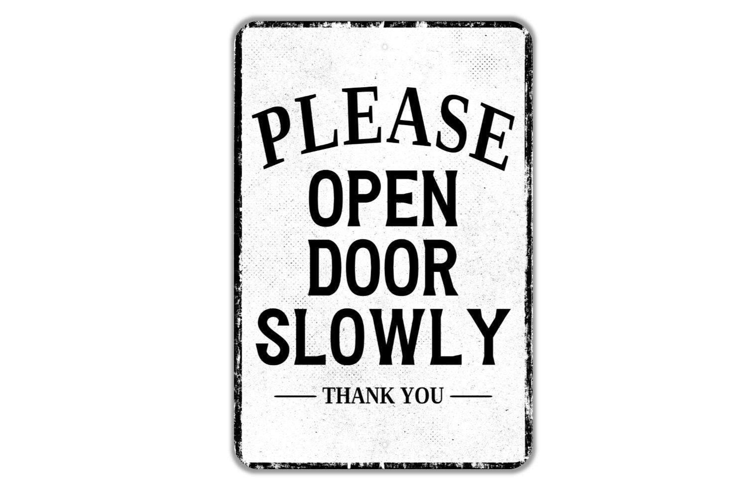 Please Open Door Slowly Thank You Sign Metal Wall Art or Vinyl Sticker for Office, Store, Restaurant, Home, Safety Reminder Wall Sign