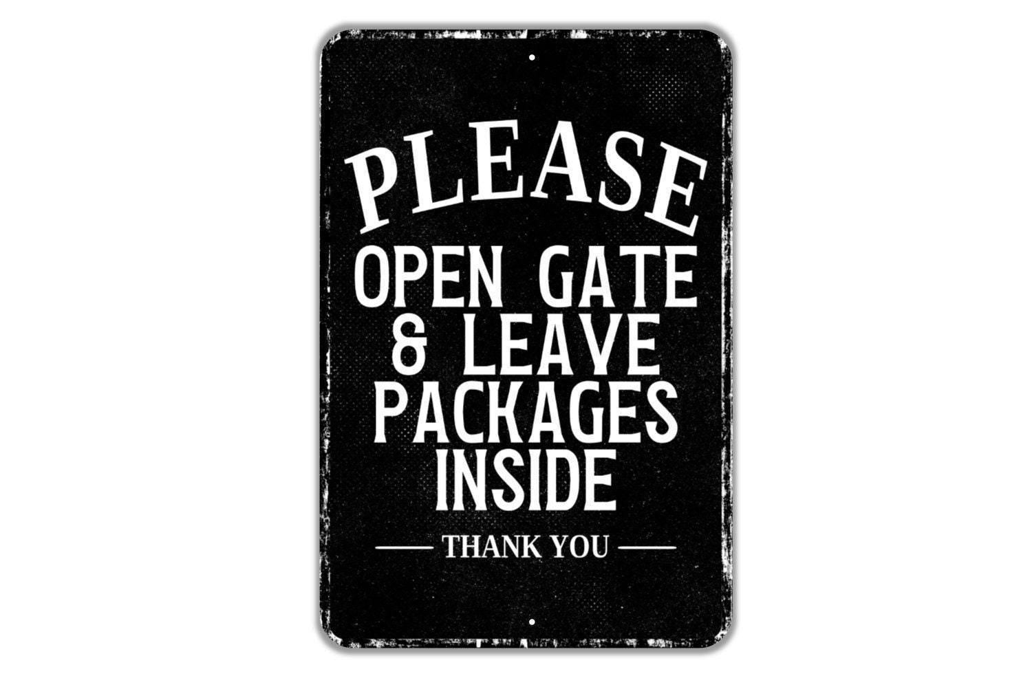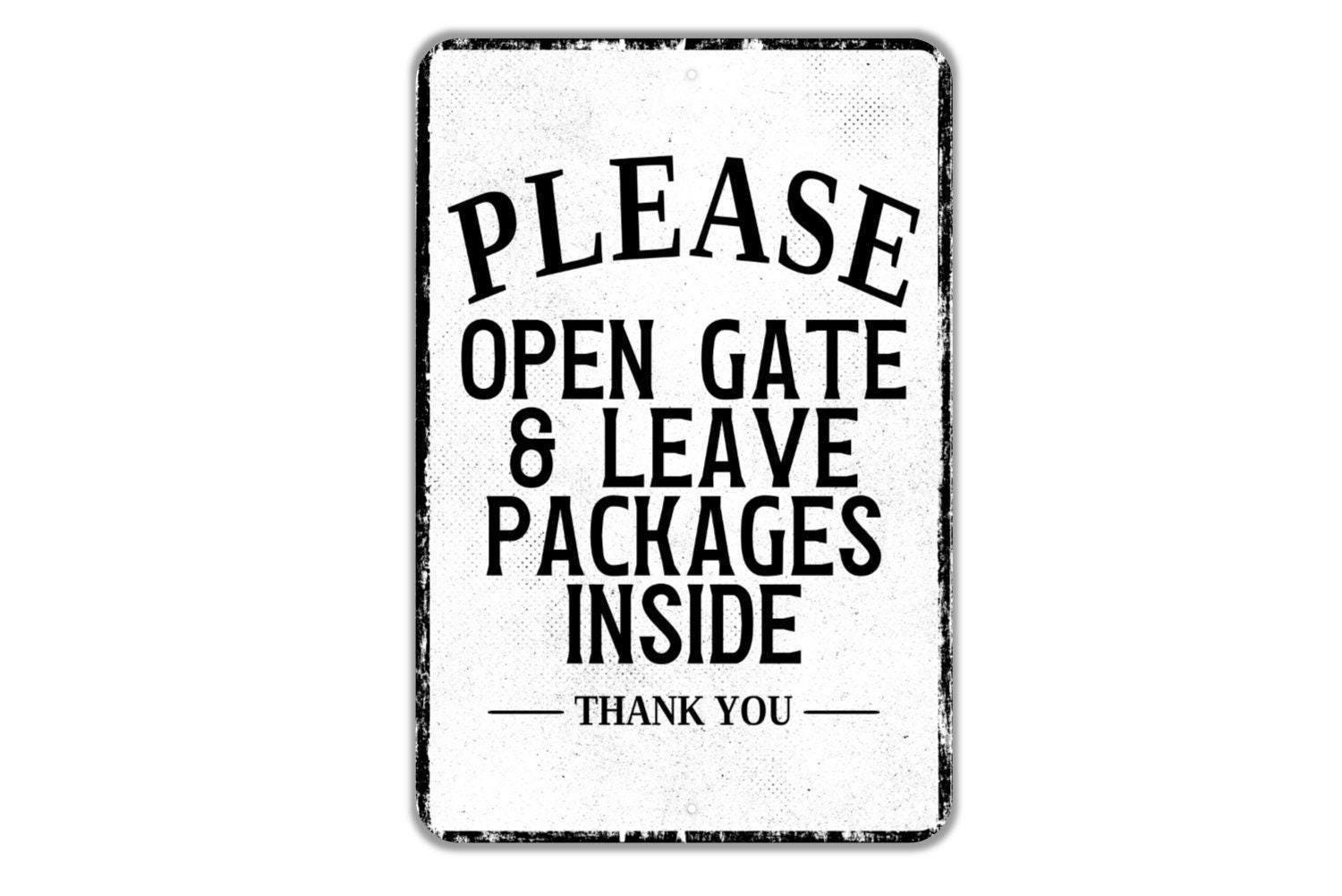 Please Open Gate And Leave Packages Inside Thank You Sign Metal Wall Art or Vinyl Sticker for Home, Yard, Fence, Delivery Driver Package
