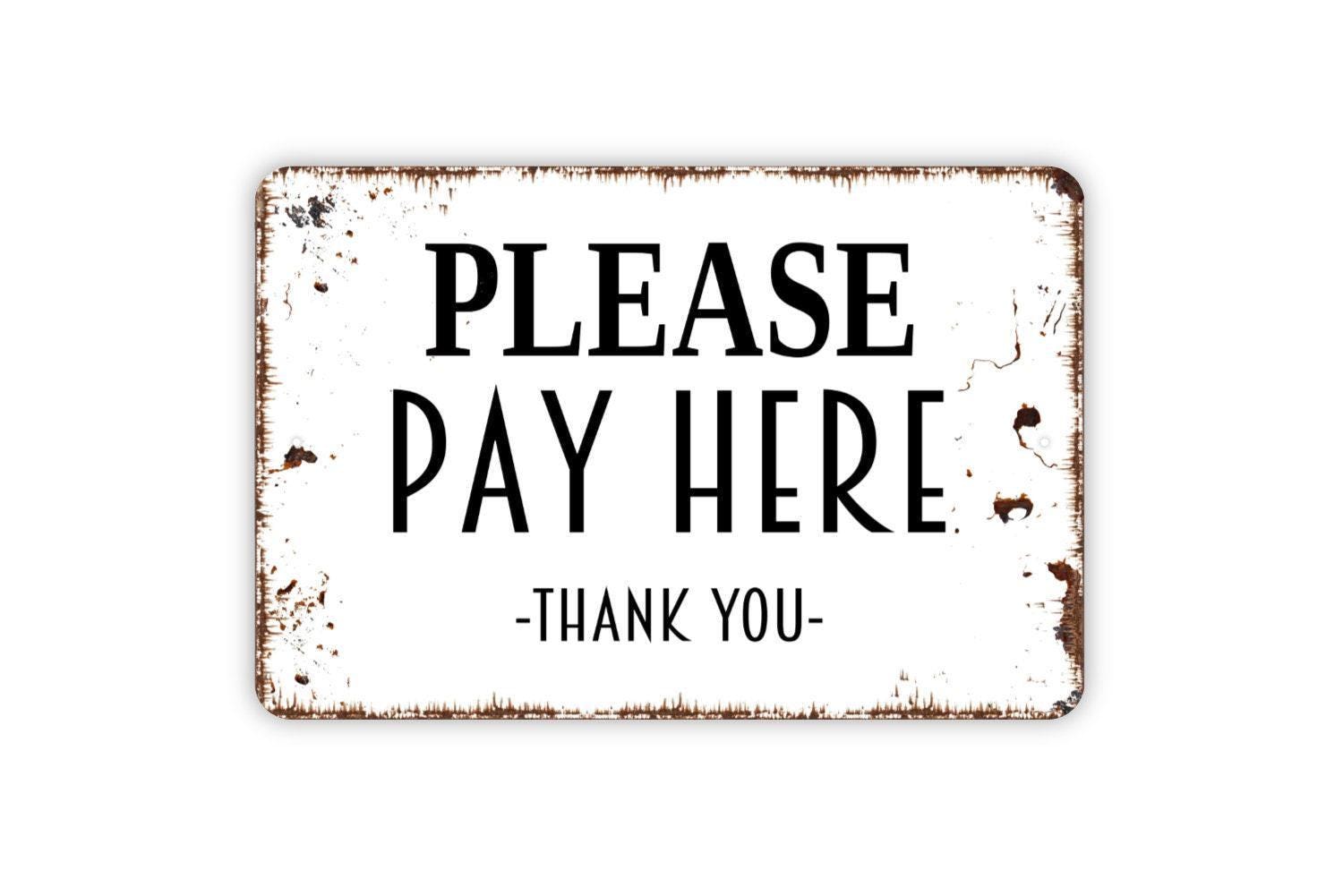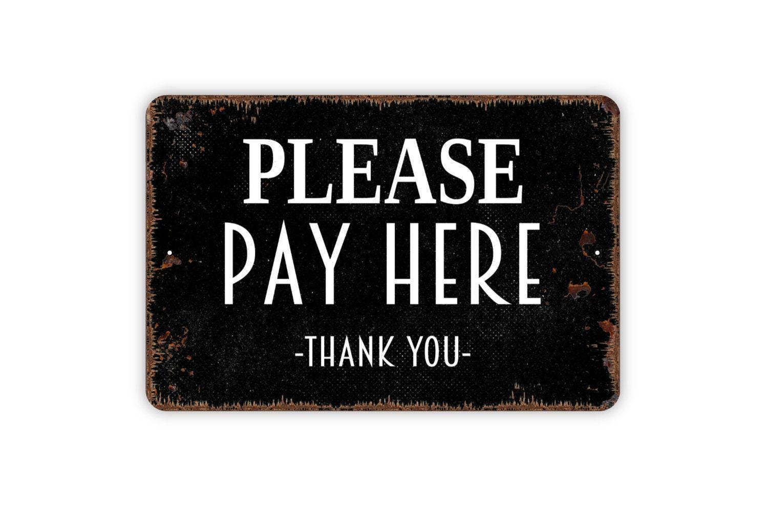 Please Pay Here Thank You Sign - Metal Sign, Farmhouse Contemporary Modern Wall Metal Sign