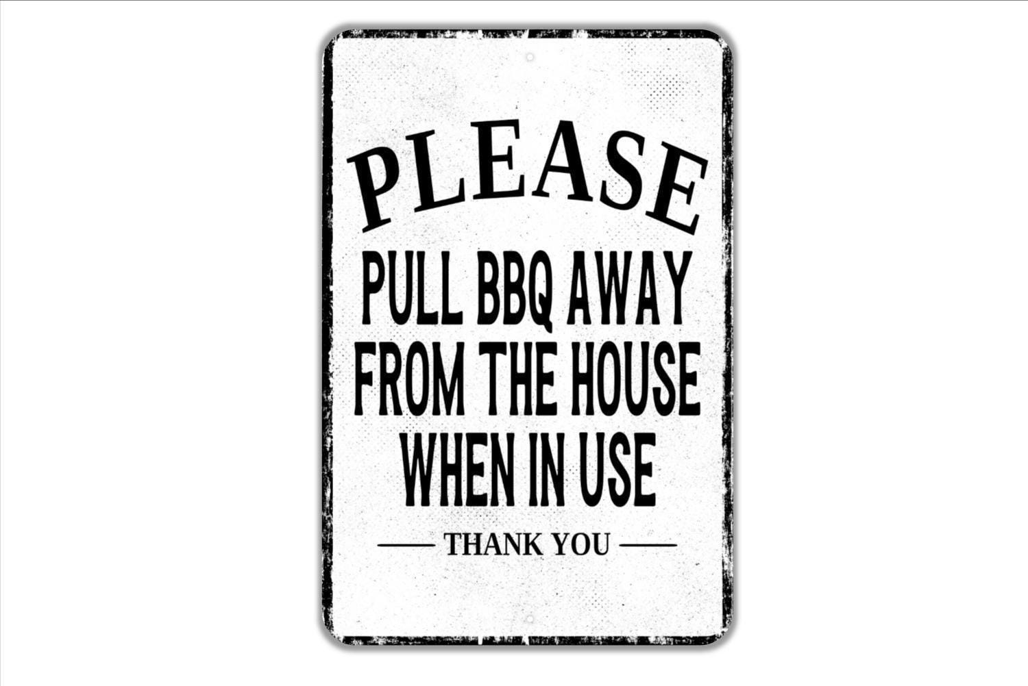 Please Pull BBQ Away From The House When In Use Thank You Sign Metal Wall Art or Vinyl Sticker for Grill, Patio, Deck, Cooking Safety