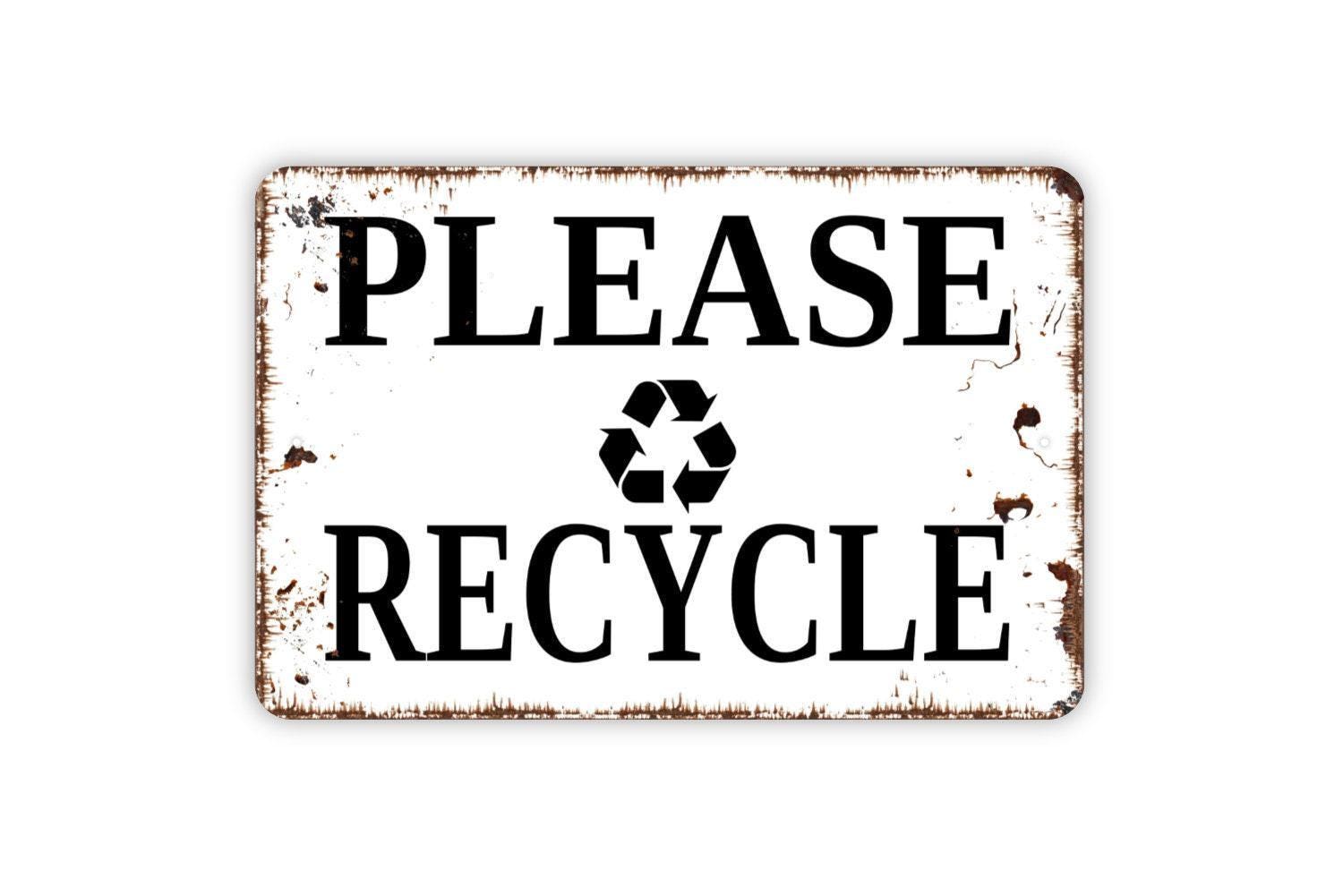 Please Recycle Sign - Trash Garbage Waste Outdoor Or Indoor Metal Wall Art